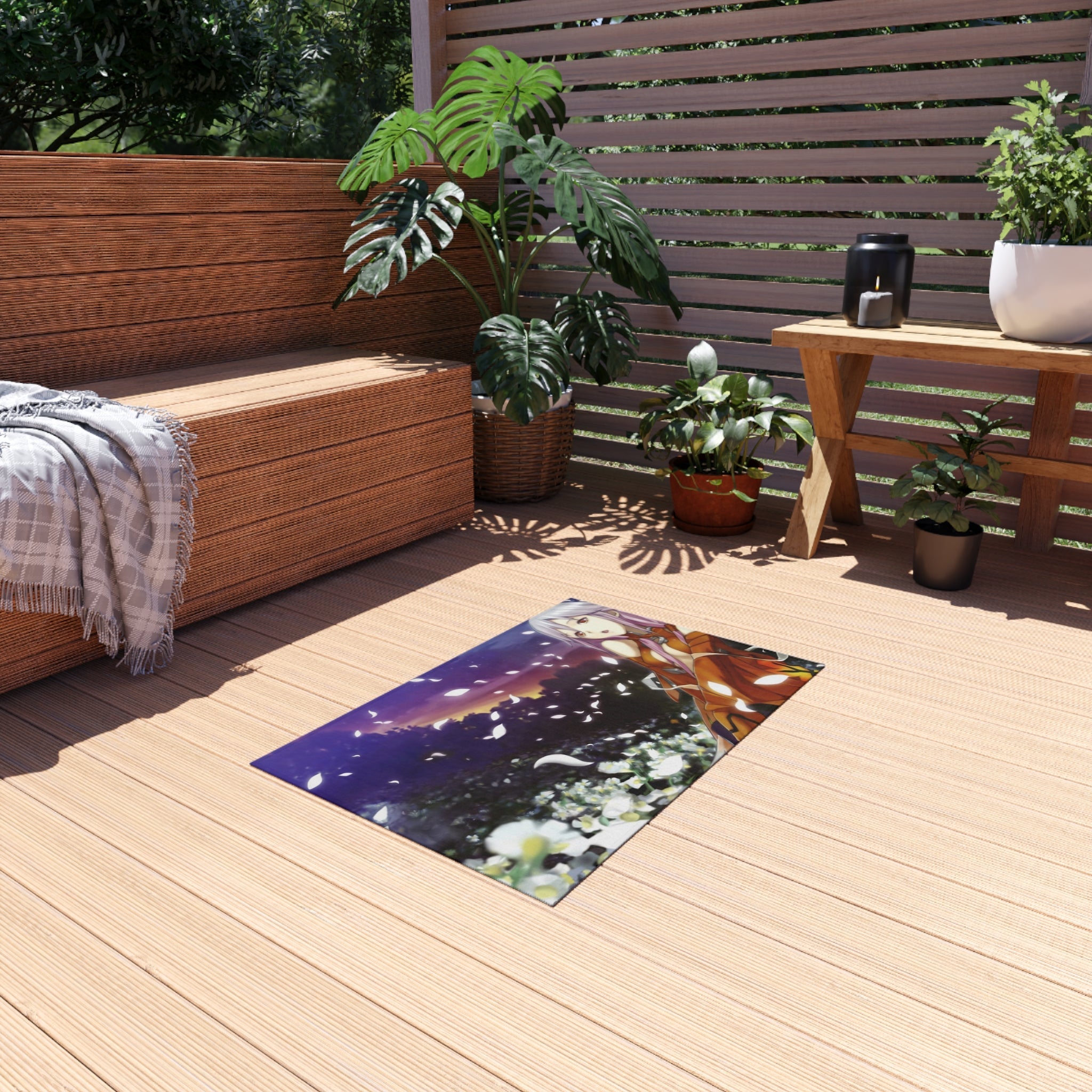 This area rug is crafted with durable construction and hemmed edges, offering lasting quality and style. A coated backing keeps the piece in place, making it the perfect finishing touch for any interior design. Vibrant colors and anime allow you to effortlessly match your existing aesthetic.