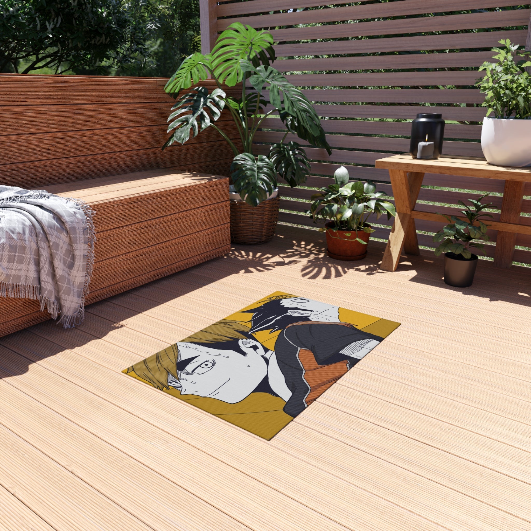 This area rug is crafted with durable construction and hemmed edges, offering lasting quality and style. A coated backing keeps the piece in place, making it the perfect finishing touch for any interior design. Vibrant colors and anime allow you to effortlessly match your existing aesthetic.