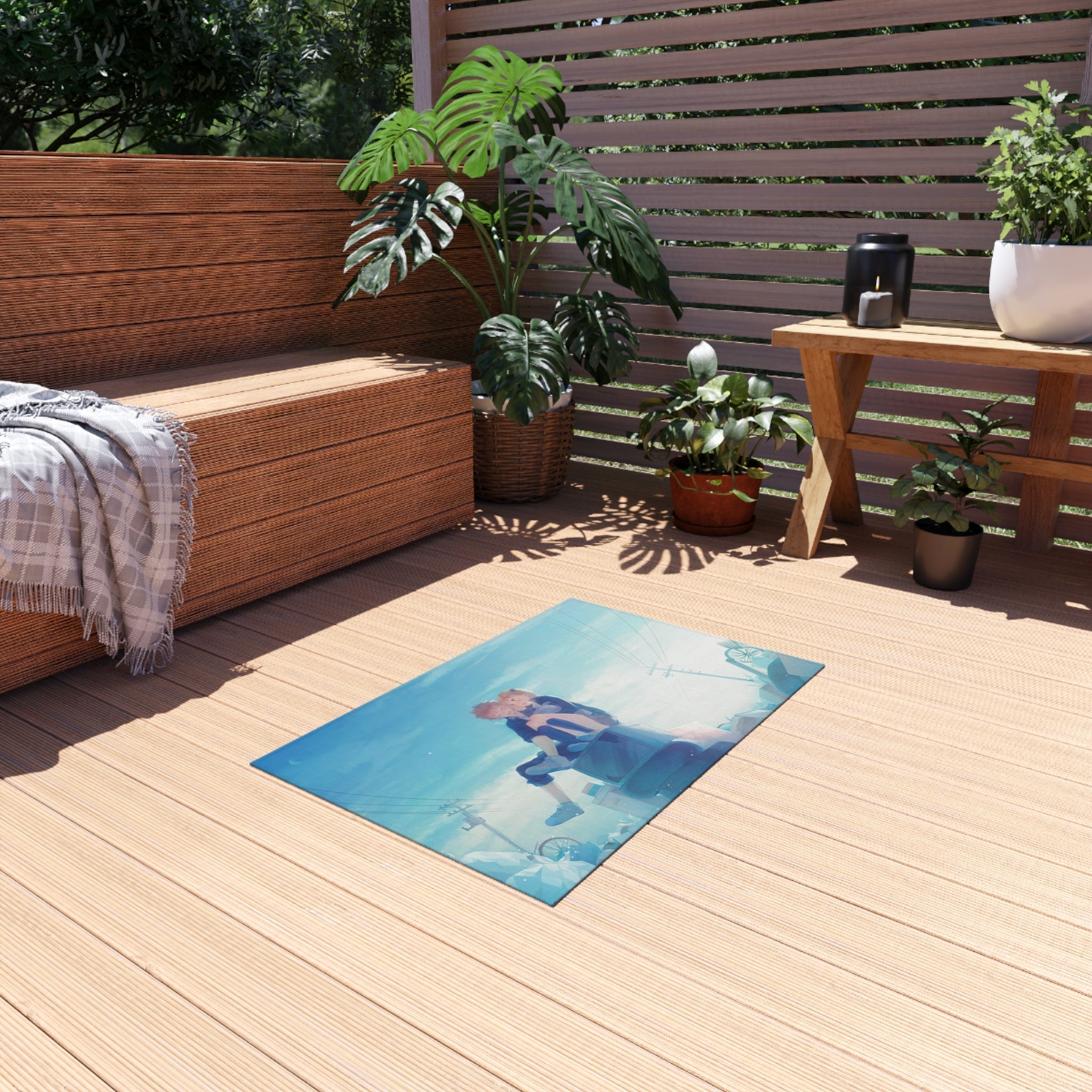 This area rug is crafted with durable construction and hemmed edges, offering lasting quality and style. A coated backing keeps the piece in place, making it the perfect finishing touch for any interior design. Vibrant colors and anime allow you to effortlessly match your existing aesthetic.