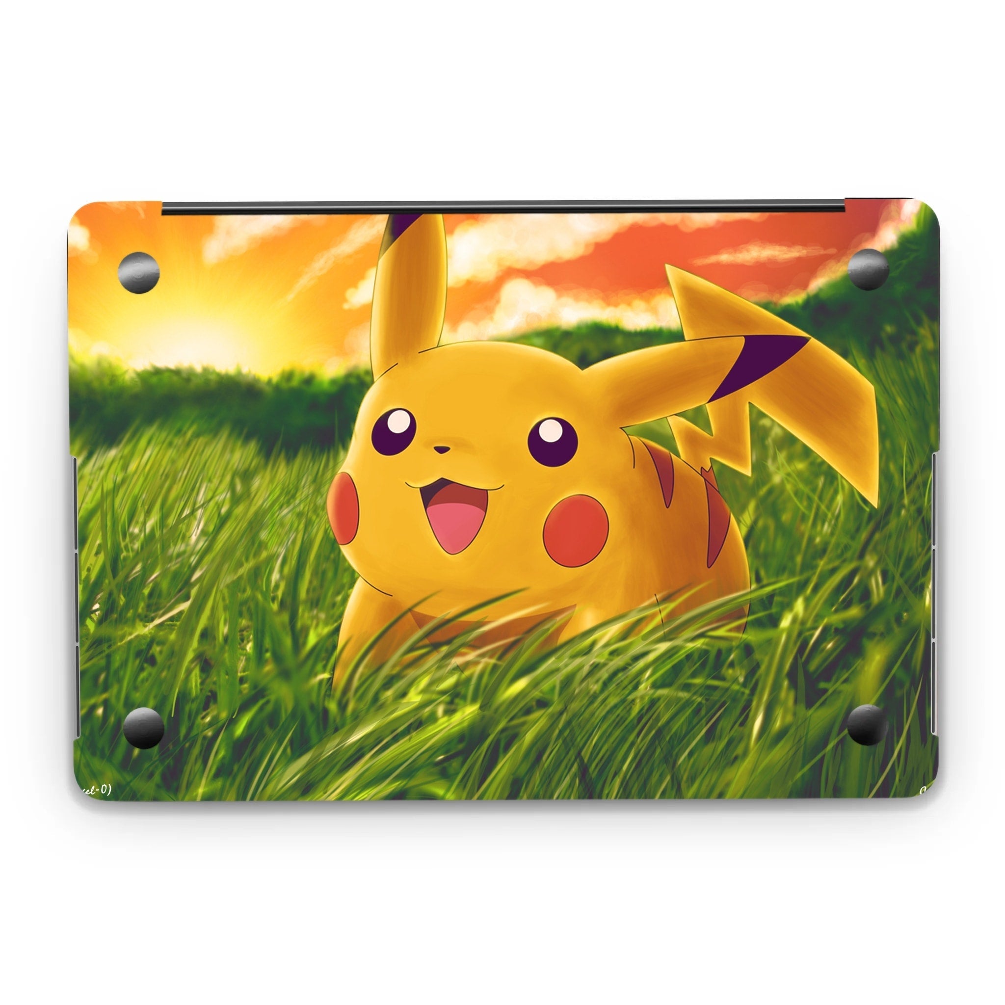 Happy Pikachu in a field of grass  Macbook Skin