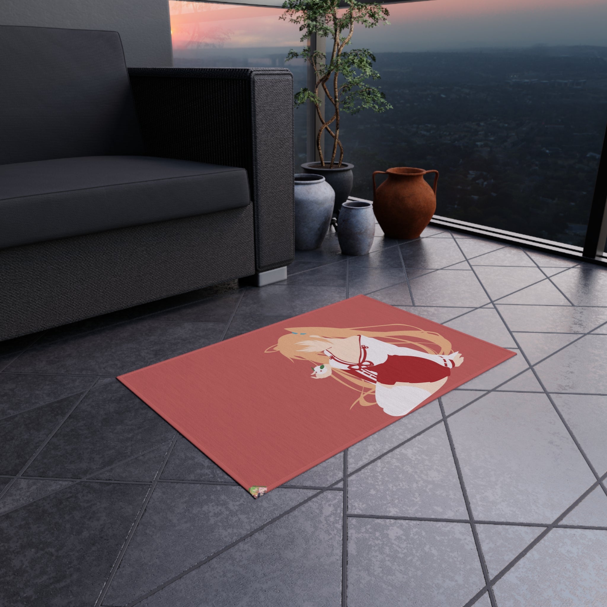 This area rug is crafted with durable construction and hemmed edges, offering lasting quality and style. A coated backing keeps the piece in place, making it the perfect finishing touch for any interior design. Vibrant colors and anime allow you to effortlessly match your existing aesthetic.