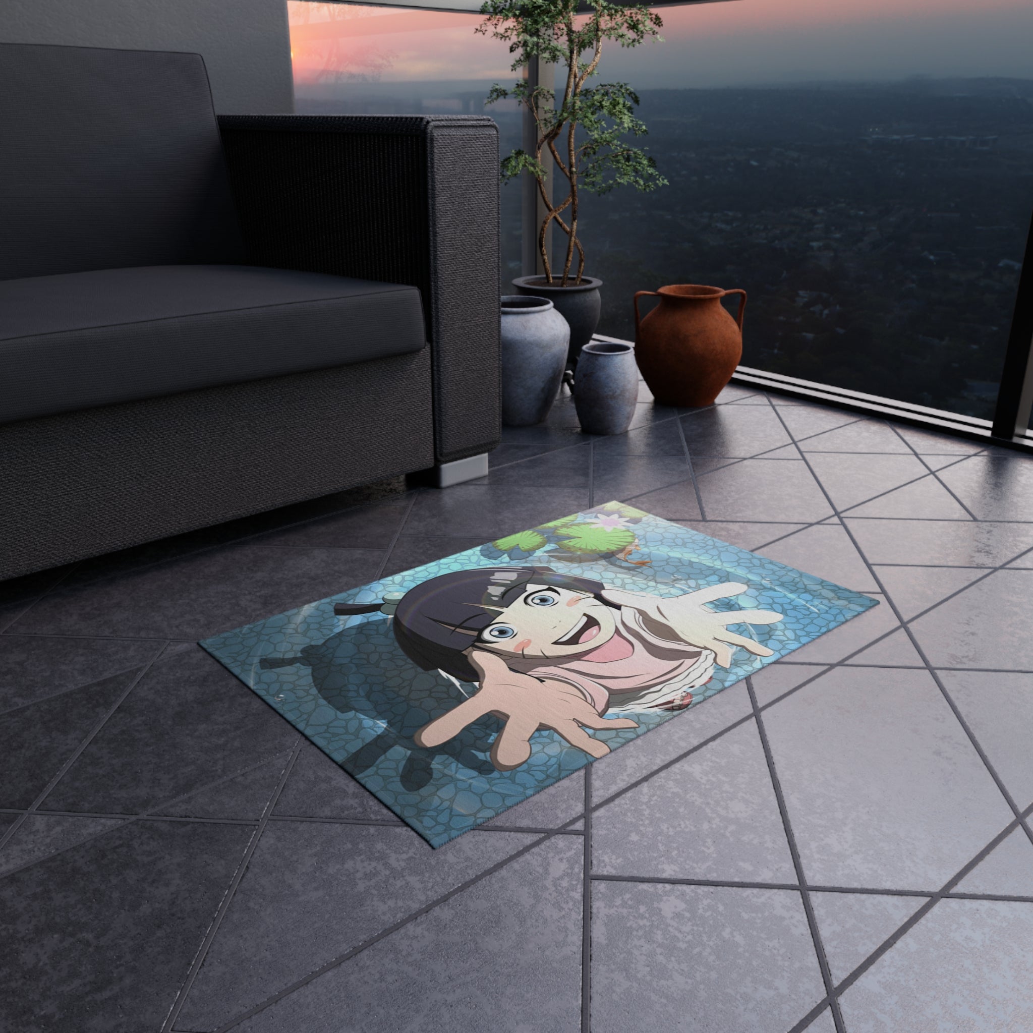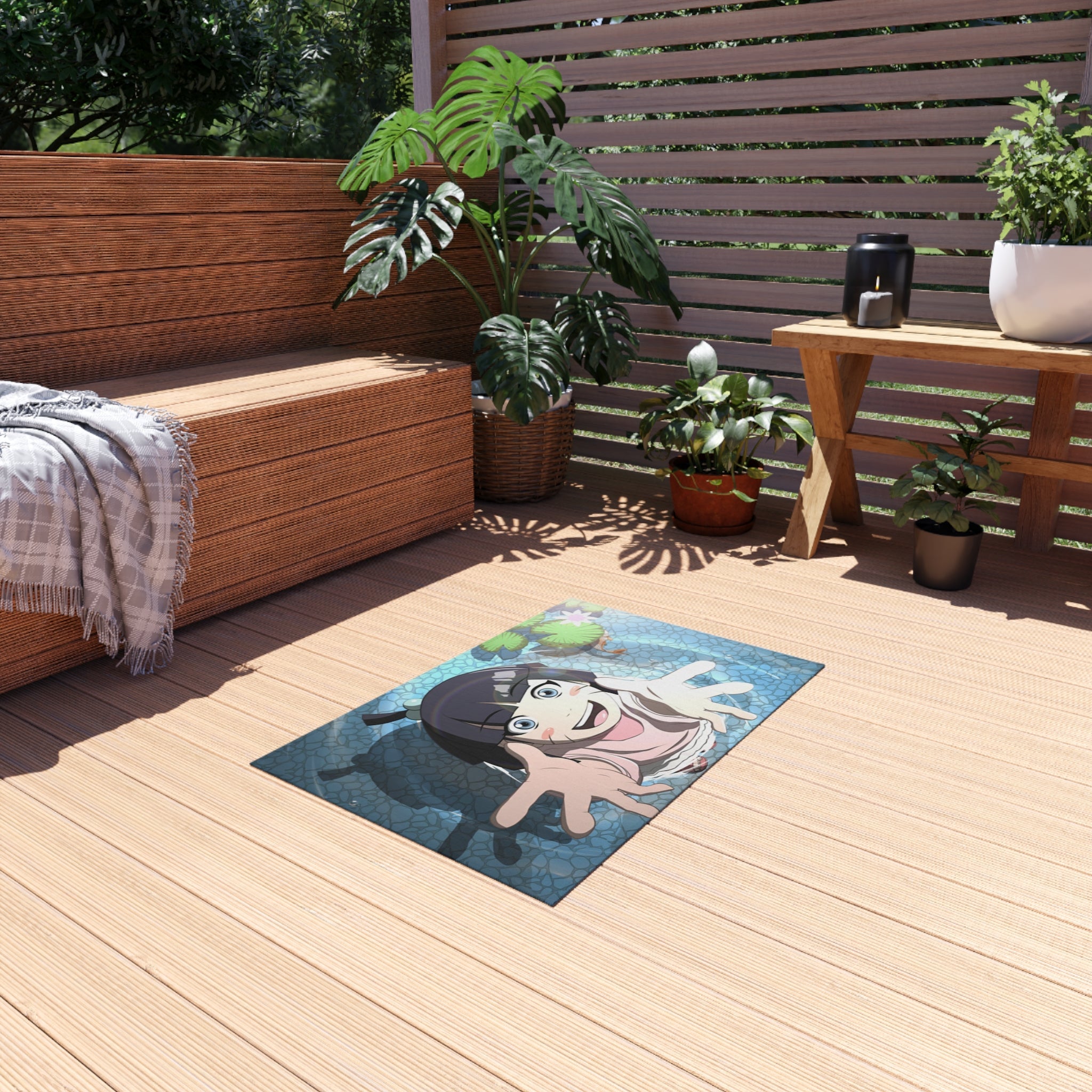 This area rug is crafted with durable construction and hemmed edges, offering lasting quality and style. A coated backing keeps the piece in place, making it the perfect finishing touch for any interior design. Vibrant colors and anime allow you to effortlessly match your existing aesthetic.
