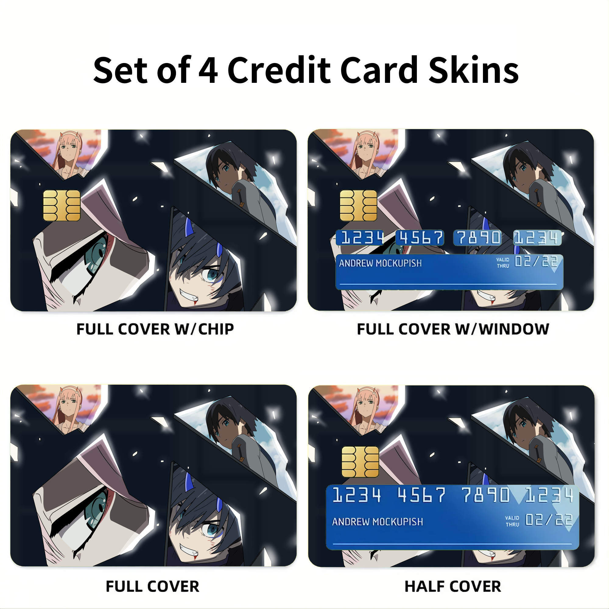 Hiro and Zero Two Moments In Broken Glass  Credit Card Skins (4-in-1 Pack)