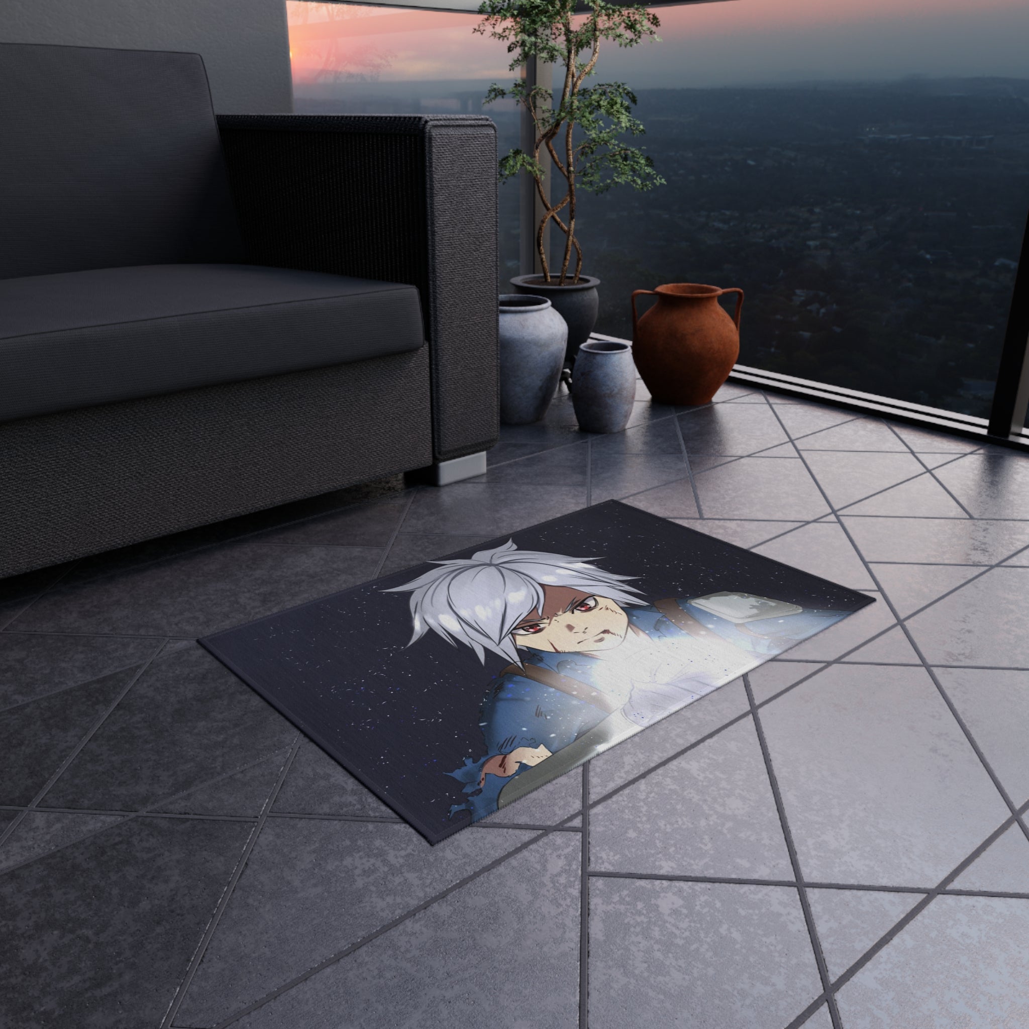 This area rug is crafted with durable construction and hemmed edges, offering lasting quality and style. A coated backing keeps the piece in place, making it the perfect finishing touch for any interior design. Vibrant colors and anime allow you to effortlessly match your existing aesthetic.