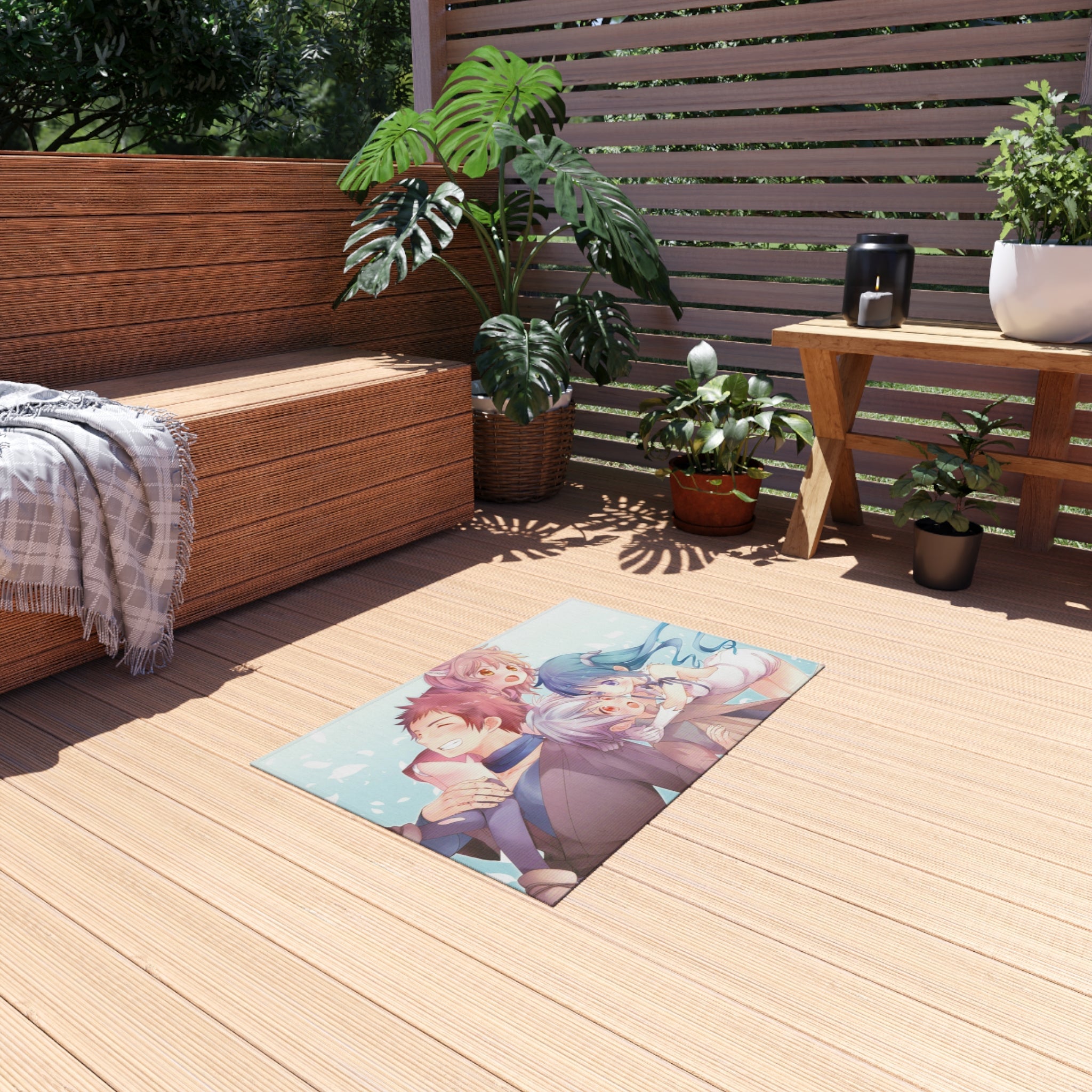 This area rug is crafted with durable construction and hemmed edges, offering lasting quality and style. A coated backing keeps the piece in place, making it the perfect finishing touch for any interior design. Vibrant colors and anime allow you to effortlessly match your existing aesthetic.