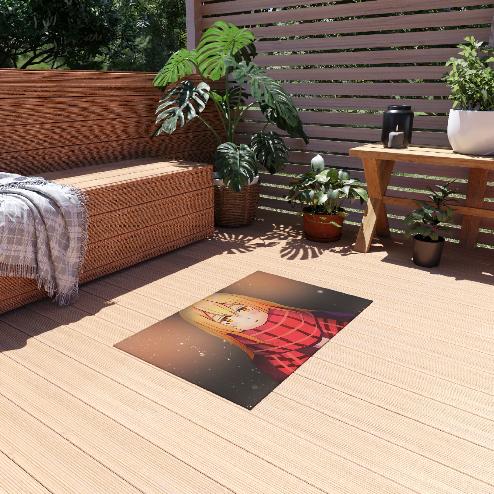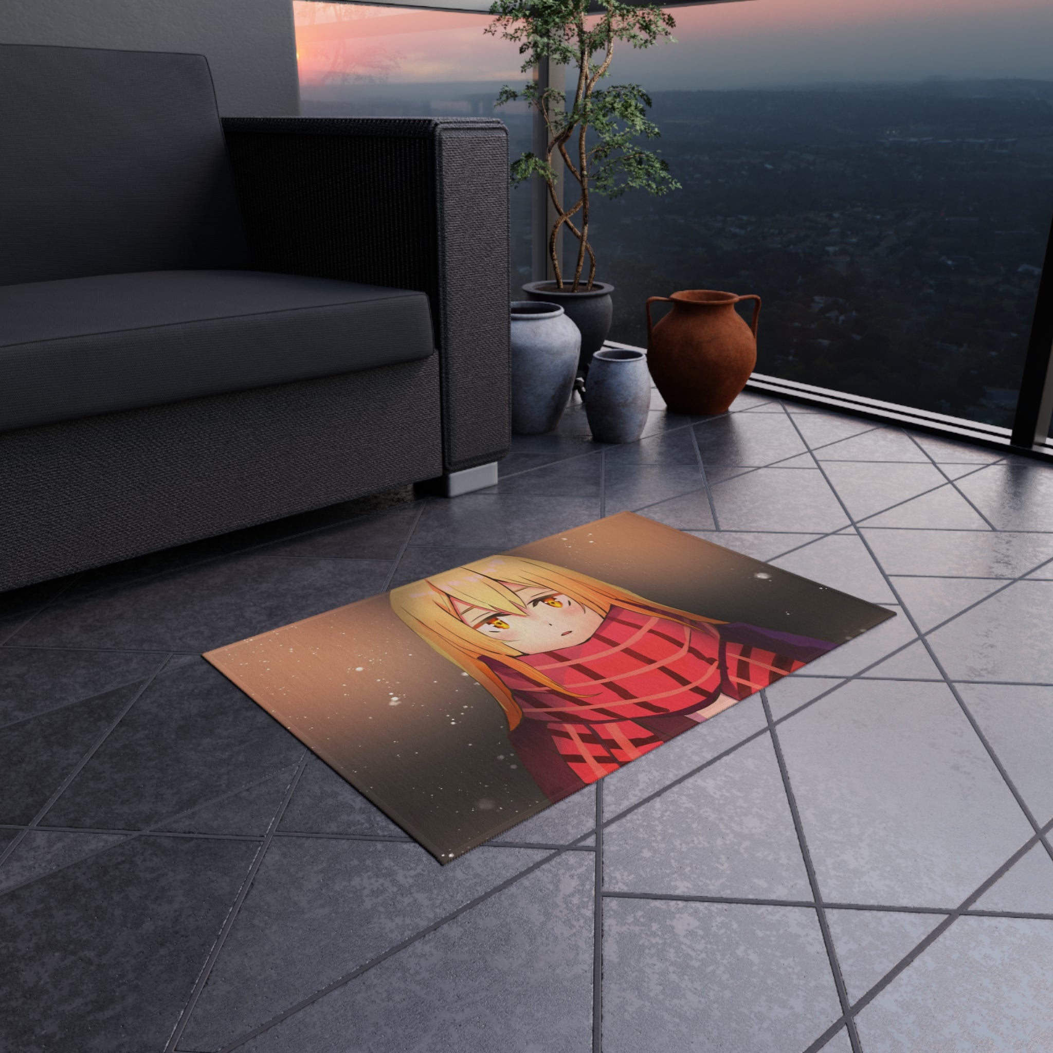This area rug is crafted with durable construction and hemmed edges, offering lasting quality and style. A coated backing keeps the piece in place, making it the perfect finishing touch for any interior design. Vibrant colors and anime allow you to effortlessly match your existing aesthetic.