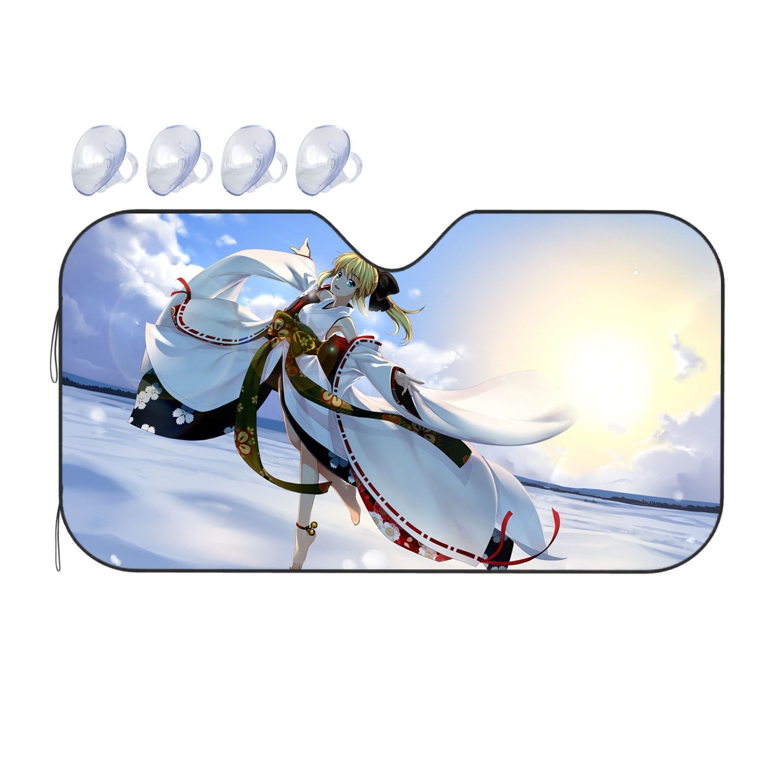 Showcase your favorite anime and protect your car's interior with this premium sunshade that blends vibrant fan art with essential protection.