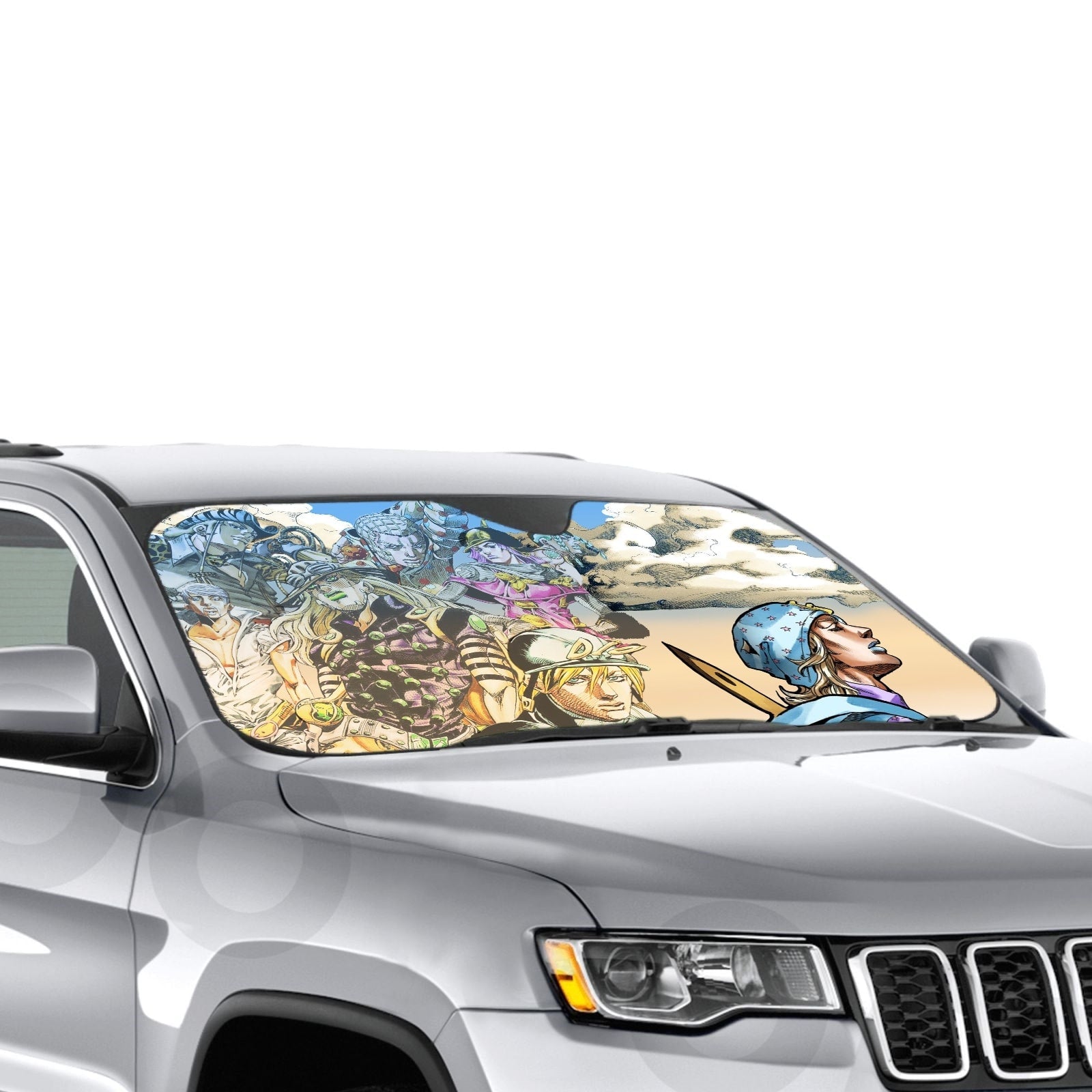 Showcase your favorite anime and protect your car's interior with this premium sunshade that blends vibrant fan art with essential protection.