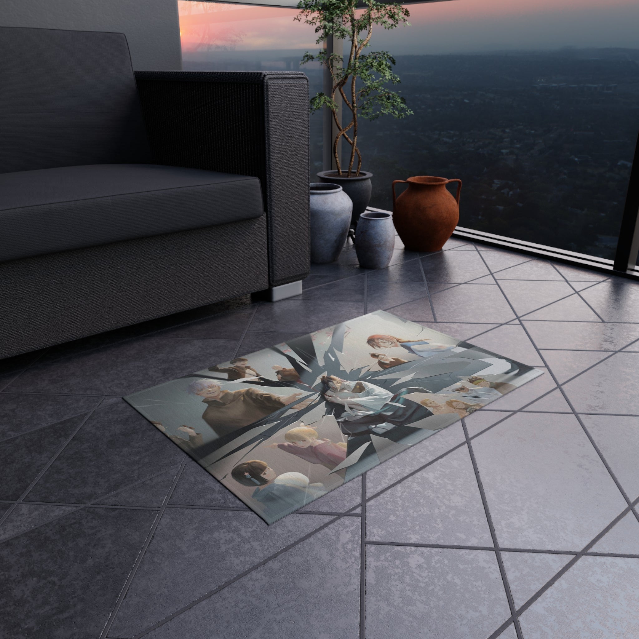This area rug is crafted with durable construction and hemmed edges, offering lasting quality and style. A coated backing keeps the piece in place, making it the perfect finishing touch for any interior design. Vibrant colors and anime allow you to effortlessly match your existing aesthetic.