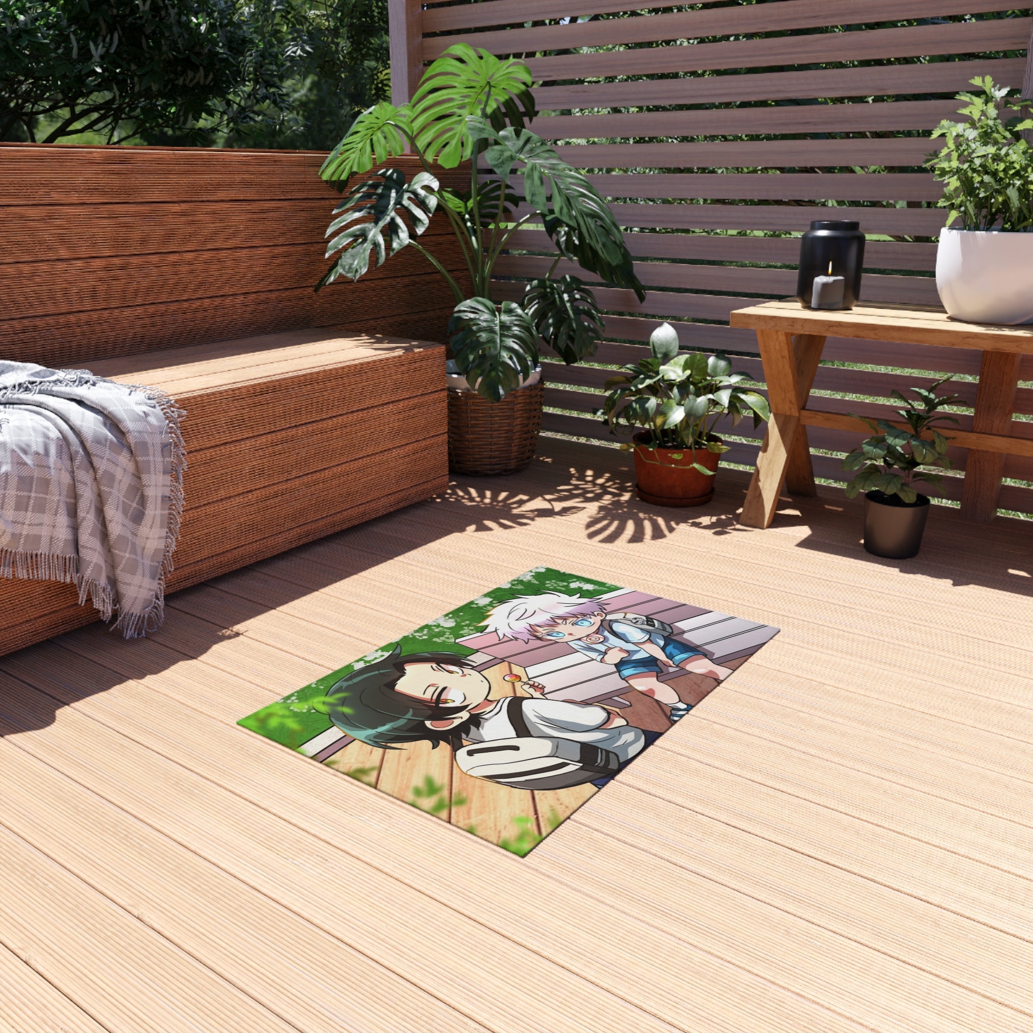 This area rug is crafted with durable construction and hemmed edges, offering lasting quality and style. A coated backing keeps the piece in place, making it the perfect finishing touch for any interior design. Vibrant colors and anime allow you to effortlessly match your existing aesthetic.