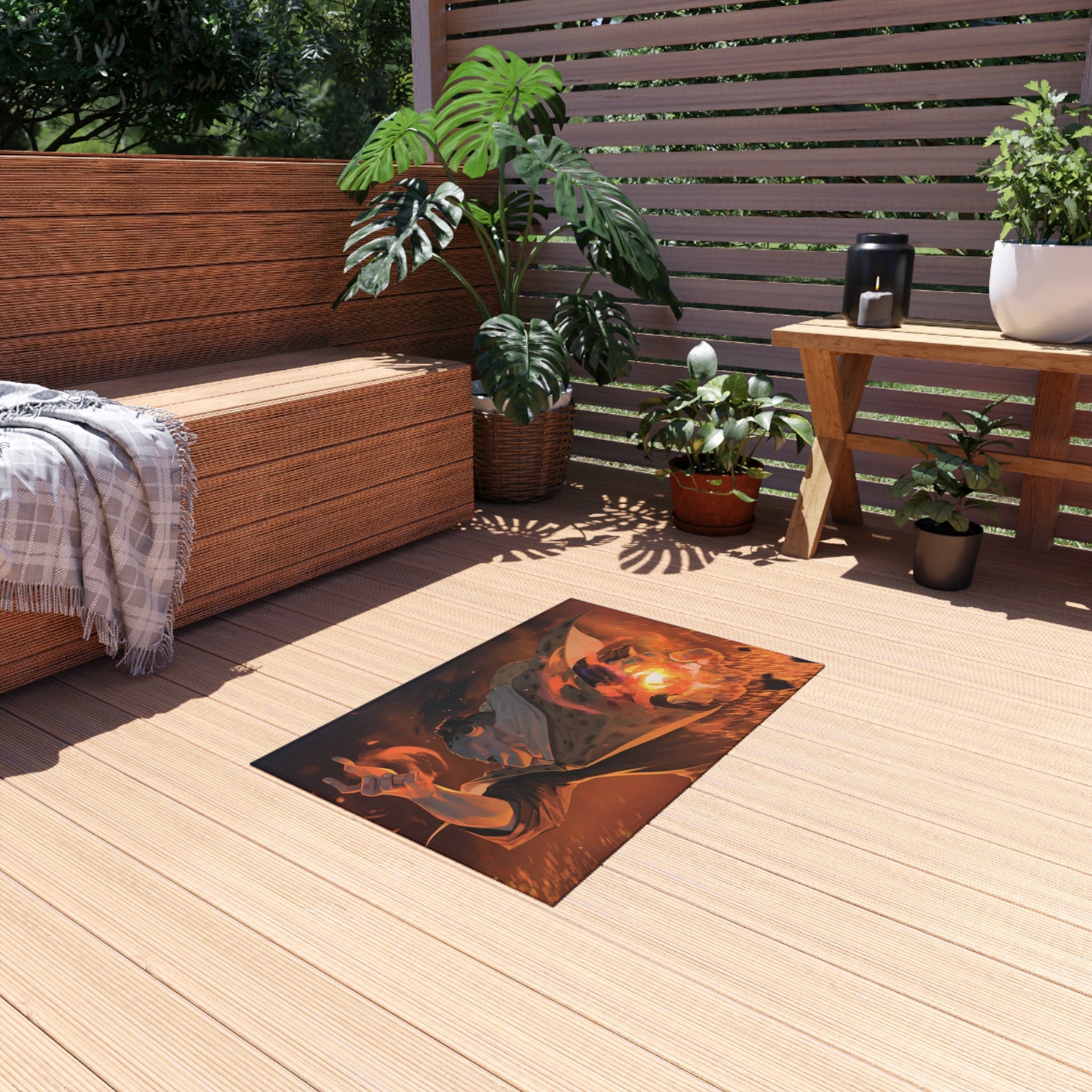 This area rug is crafted with durable construction and hemmed edges, offering lasting quality and style. A coated backing keeps the piece in place, making it the perfect finishing touch for any interior design. Vibrant colors and anime allow you to effortlessly match your existing aesthetic.