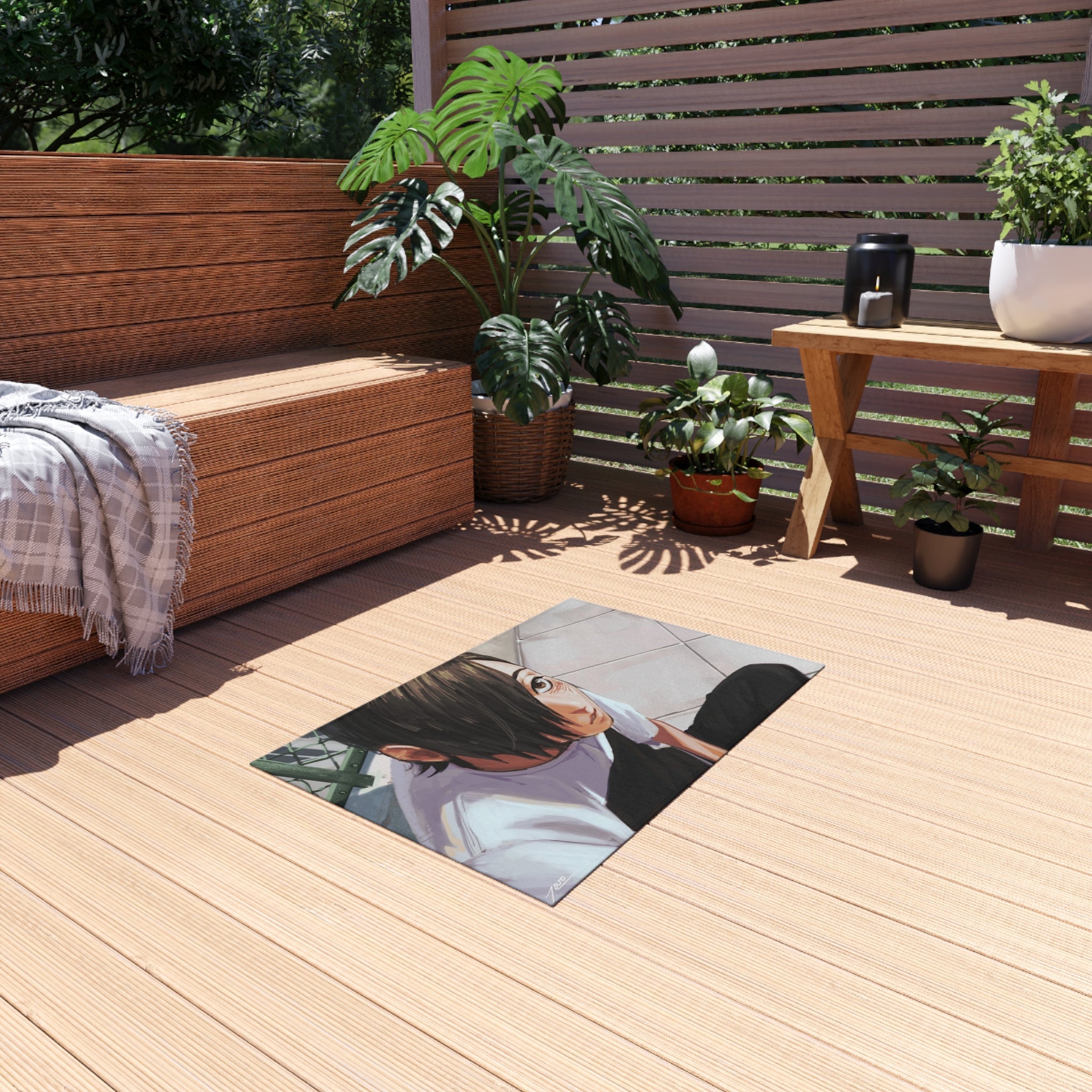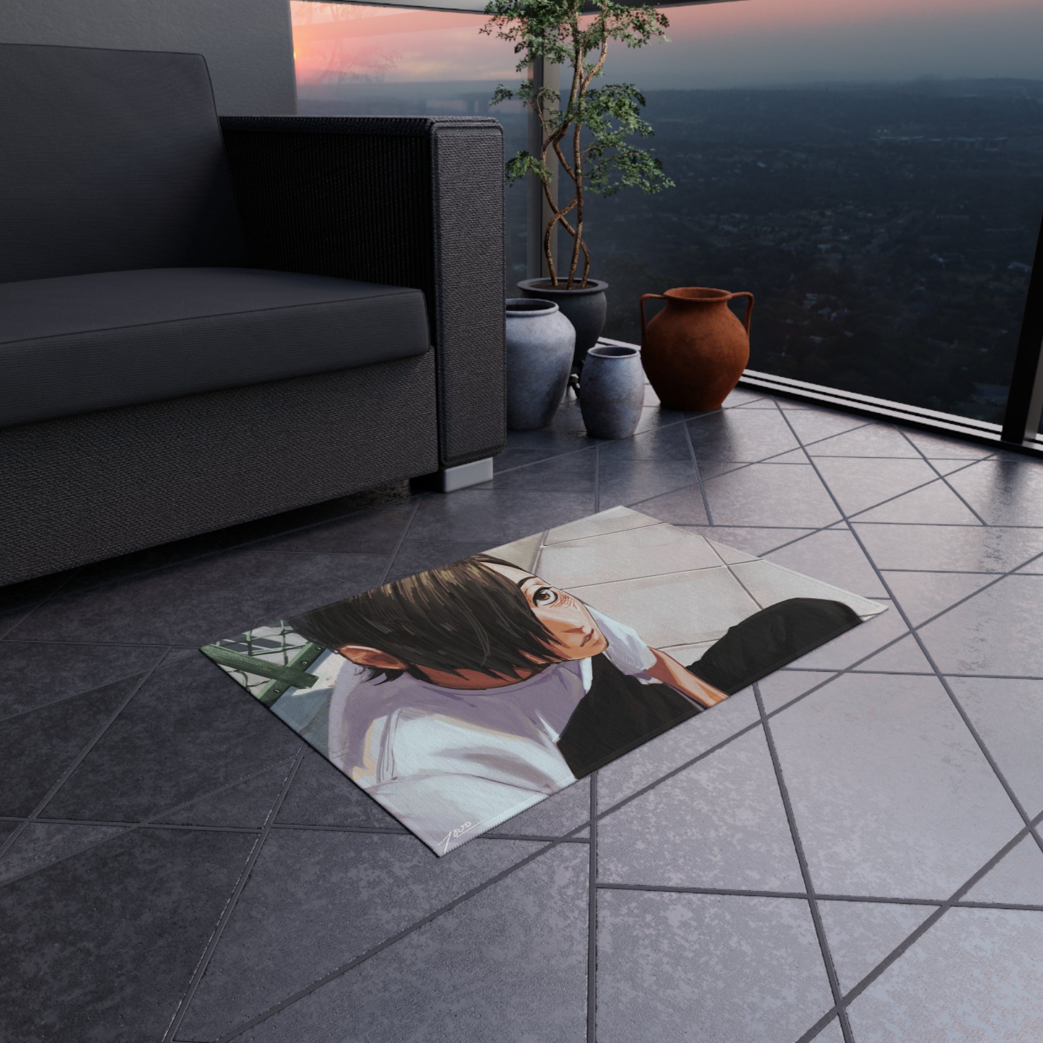 This area rug is crafted with durable construction and hemmed edges, offering lasting quality and style. A coated backing keeps the piece in place, making it the perfect finishing touch for any interior design. Vibrant colors and anime allow you to effortlessly match your existing aesthetic.