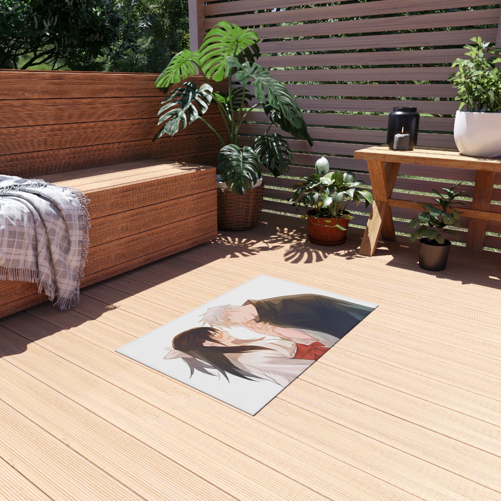 This area rug is crafted with durable construction and hemmed edges, offering lasting quality and style. A coated backing keeps the piece in place, making it the perfect finishing touch for any interior design. Vibrant colors and anime allow you to effortlessly match your existing aesthetic.
