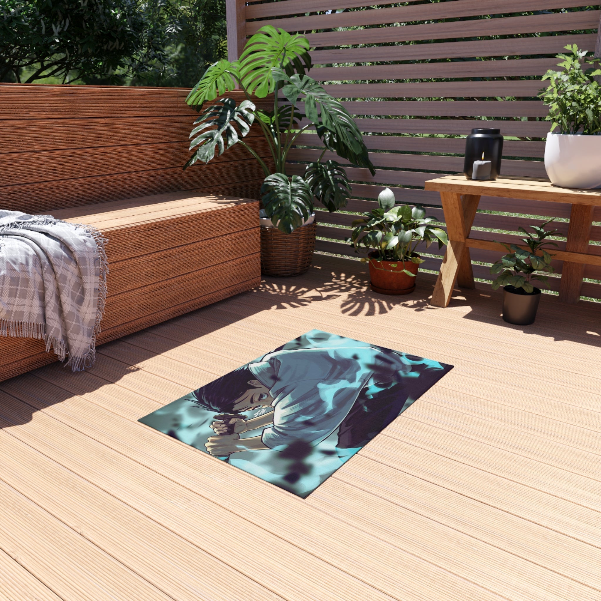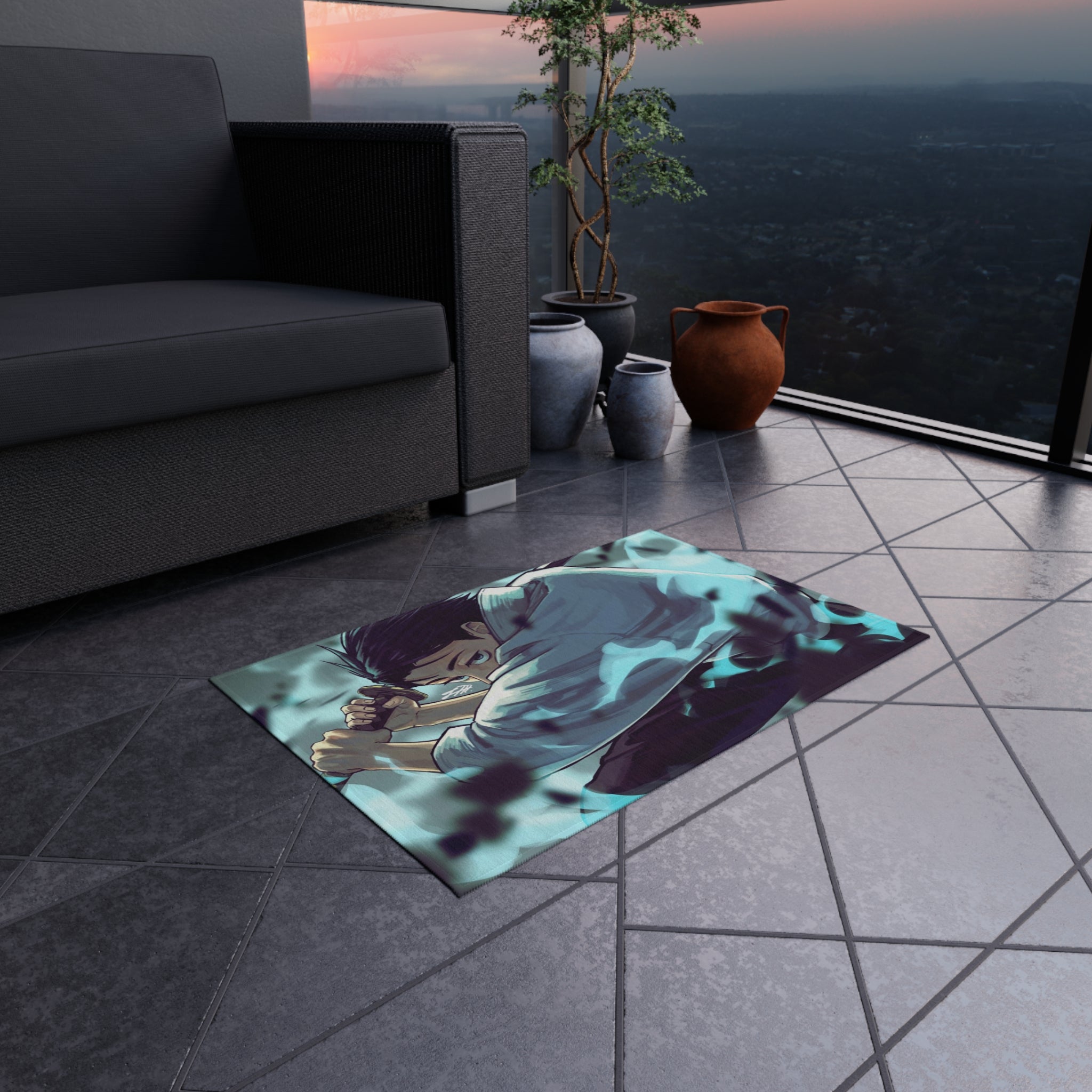 This area rug is crafted with durable construction and hemmed edges, offering lasting quality and style. A coated backing keeps the piece in place, making it the perfect finishing touch for any interior design. Vibrant colors and anime allow you to effortlessly match your existing aesthetic.
