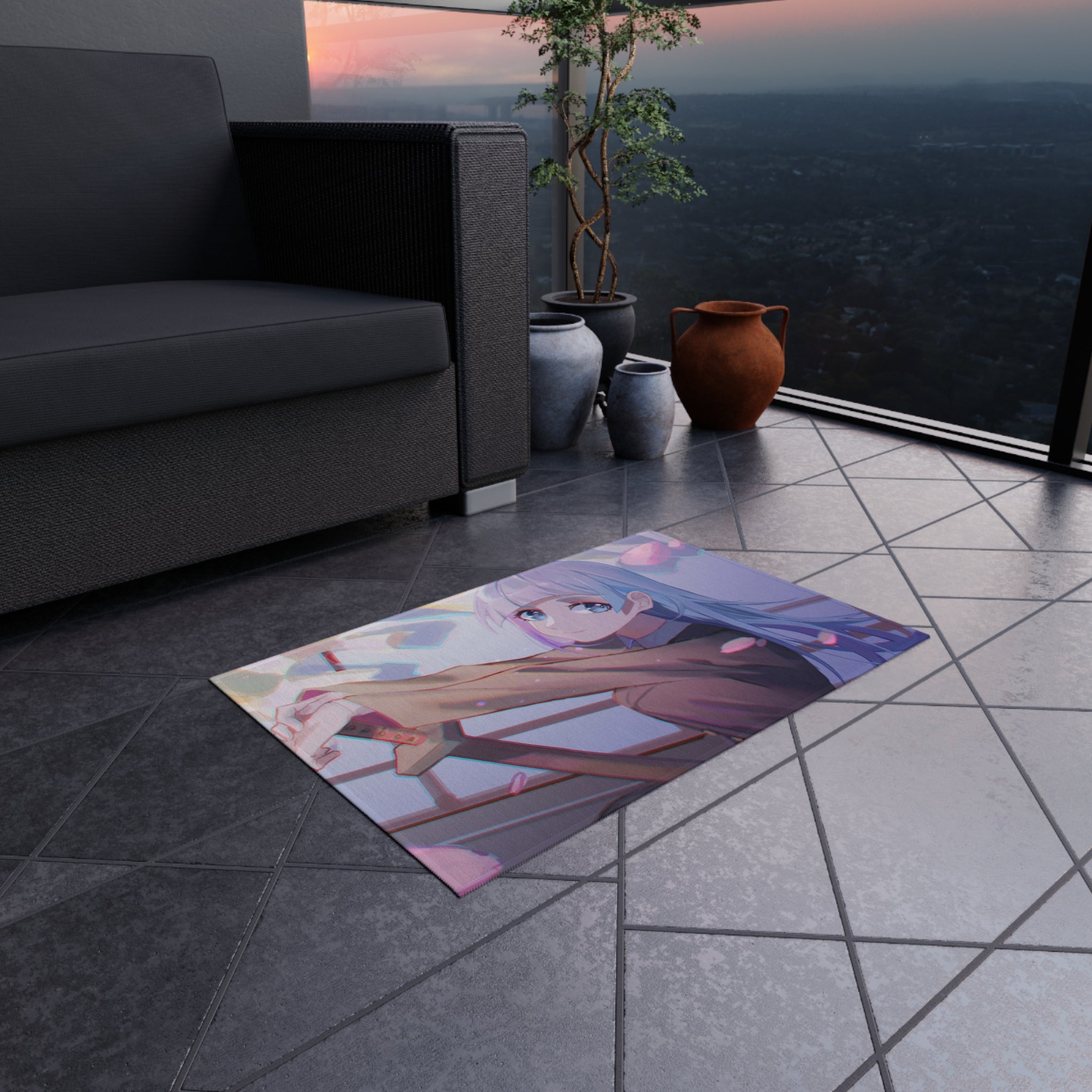 This area rug is crafted with durable construction and hemmed edges, offering lasting quality and style. A coated backing keeps the piece in place, making it the perfect finishing touch for any interior design. Vibrant colors and anime allow you to effortlessly match your existing aesthetic.