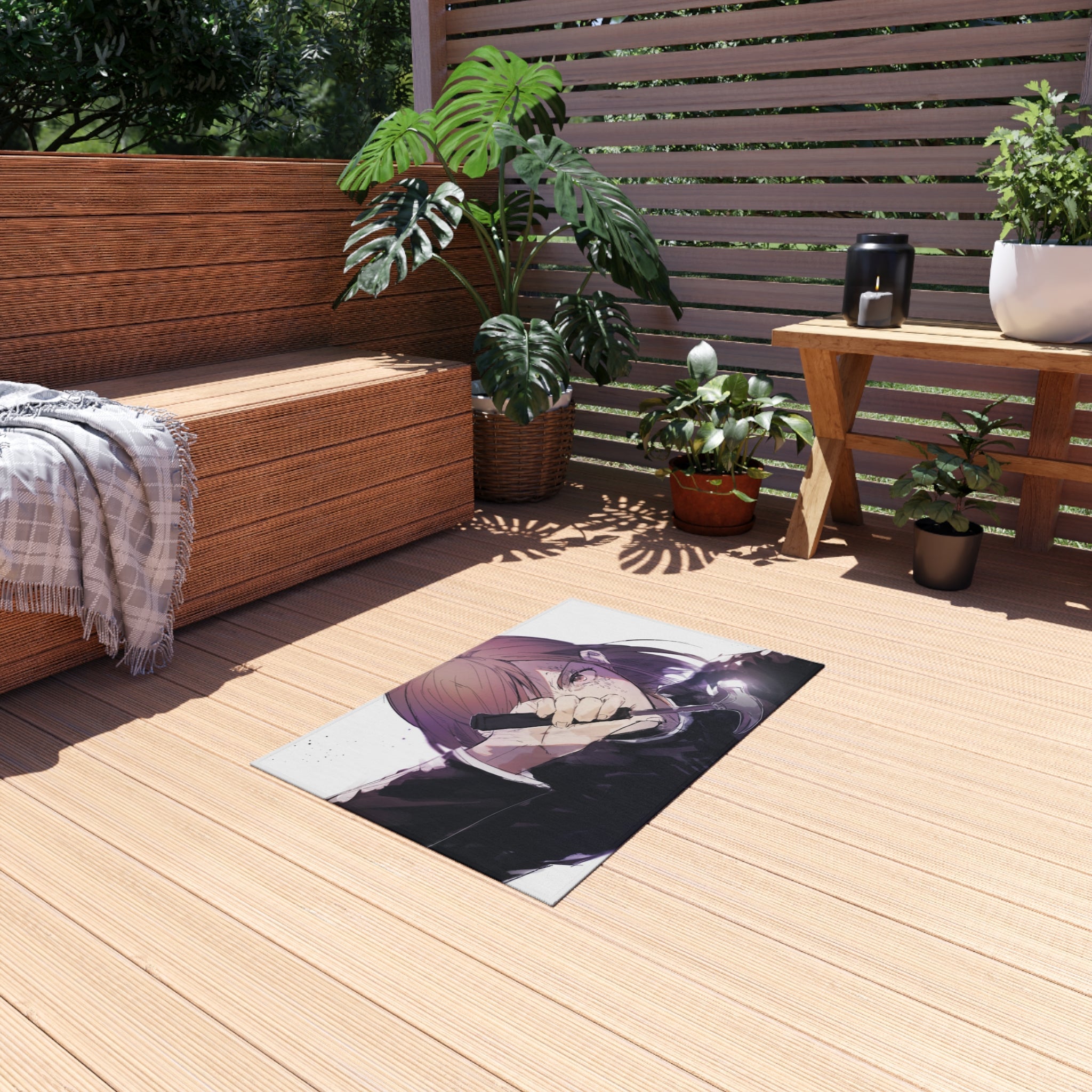 This area rug is crafted with durable construction and hemmed edges, offering lasting quality and style. A coated backing keeps the piece in place, making it the perfect finishing touch for any interior design. Vibrant colors and anime allow you to effortlessly match your existing aesthetic.