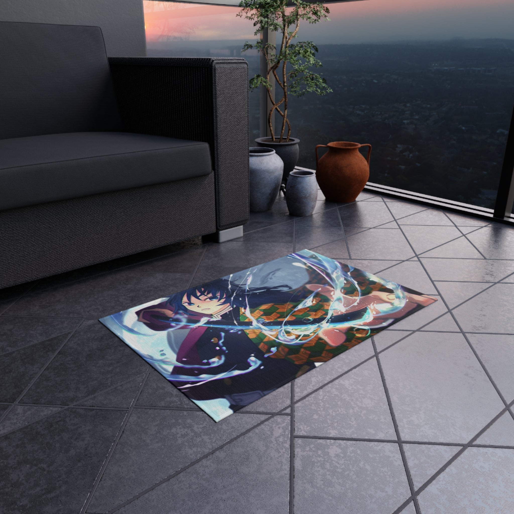 This area rug is crafted with durable construction and hemmed edges, offering lasting quality and style. A coated backing keeps the piece in place, making it the perfect finishing touch for any interior design. Vibrant colors and anime allow you to effortlessly match your existing aesthetic.