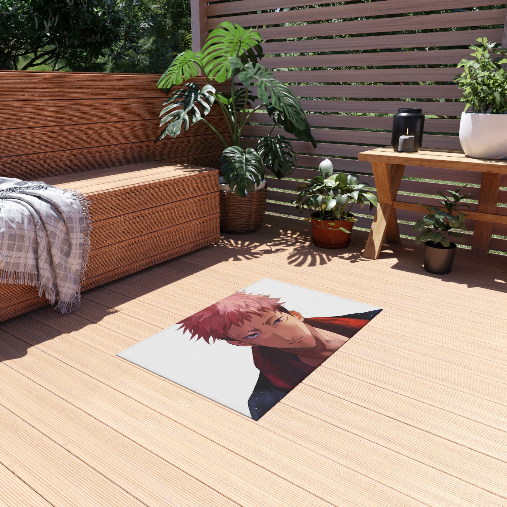 This area rug is crafted with durable construction and hemmed edges, offering lasting quality and style. A coated backing keeps the piece in place, making it the perfect finishing touch for any interior design. Vibrant colors and anime allow you to effortlessly match your existing aesthetic.