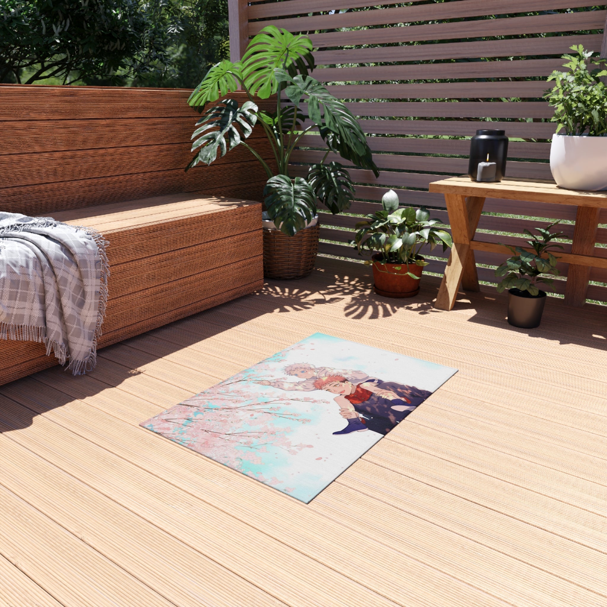 This area rug is crafted with durable construction and hemmed edges, offering lasting quality and style. A coated backing keeps the piece in place, making it the perfect finishing touch for any interior design. Vibrant colors and anime allow you to effortlessly match your existing aesthetic.