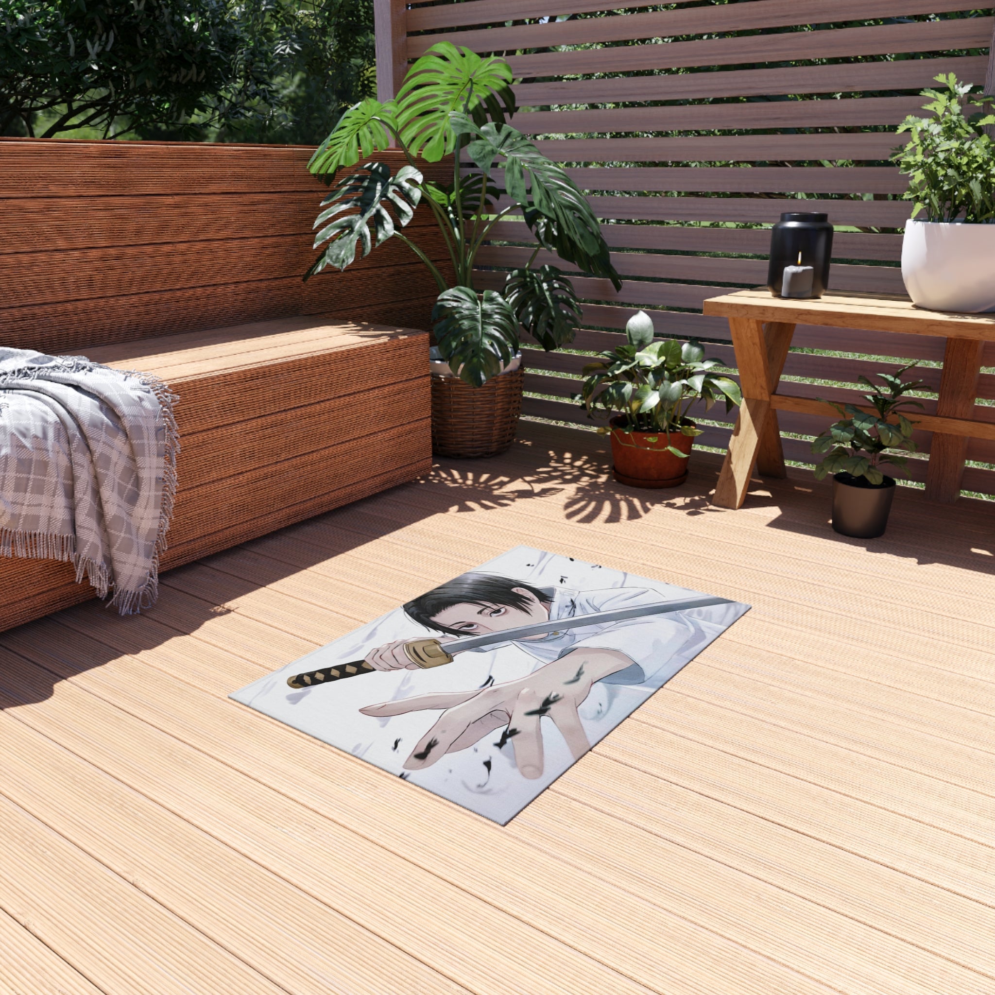 This area rug is crafted with durable construction and hemmed edges, offering lasting quality and style. A coated backing keeps the piece in place, making it the perfect finishing touch for any interior design. Vibrant colors and anime allow you to effortlessly match your existing aesthetic.