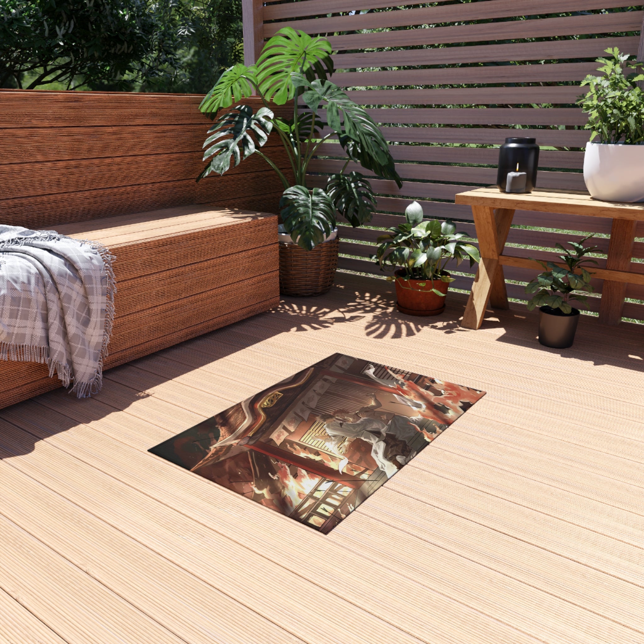 This area rug is crafted with durable construction and hemmed edges, offering lasting quality and style. A coated backing keeps the piece in place, making it the perfect finishing touch for any interior design. Vibrant colors and anime allow you to effortlessly match your existing aesthetic.