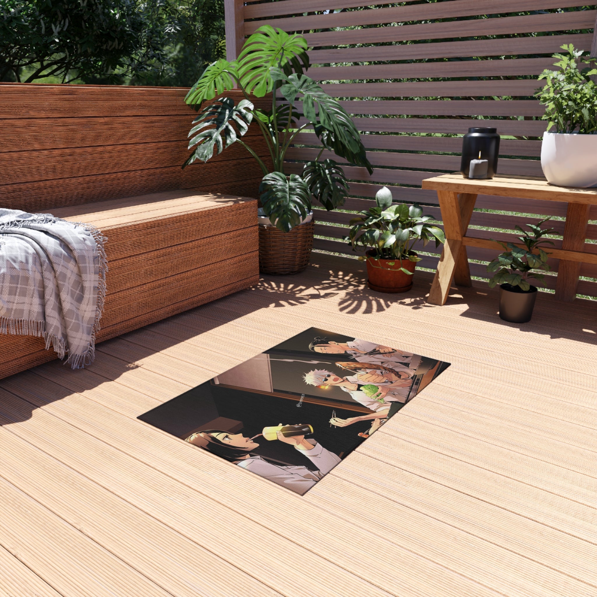 This area rug is crafted with durable construction and hemmed edges, offering lasting quality and style. A coated backing keeps the piece in place, making it the perfect finishing touch for any interior design. Vibrant colors and anime allow you to effortlessly match your existing aesthetic.