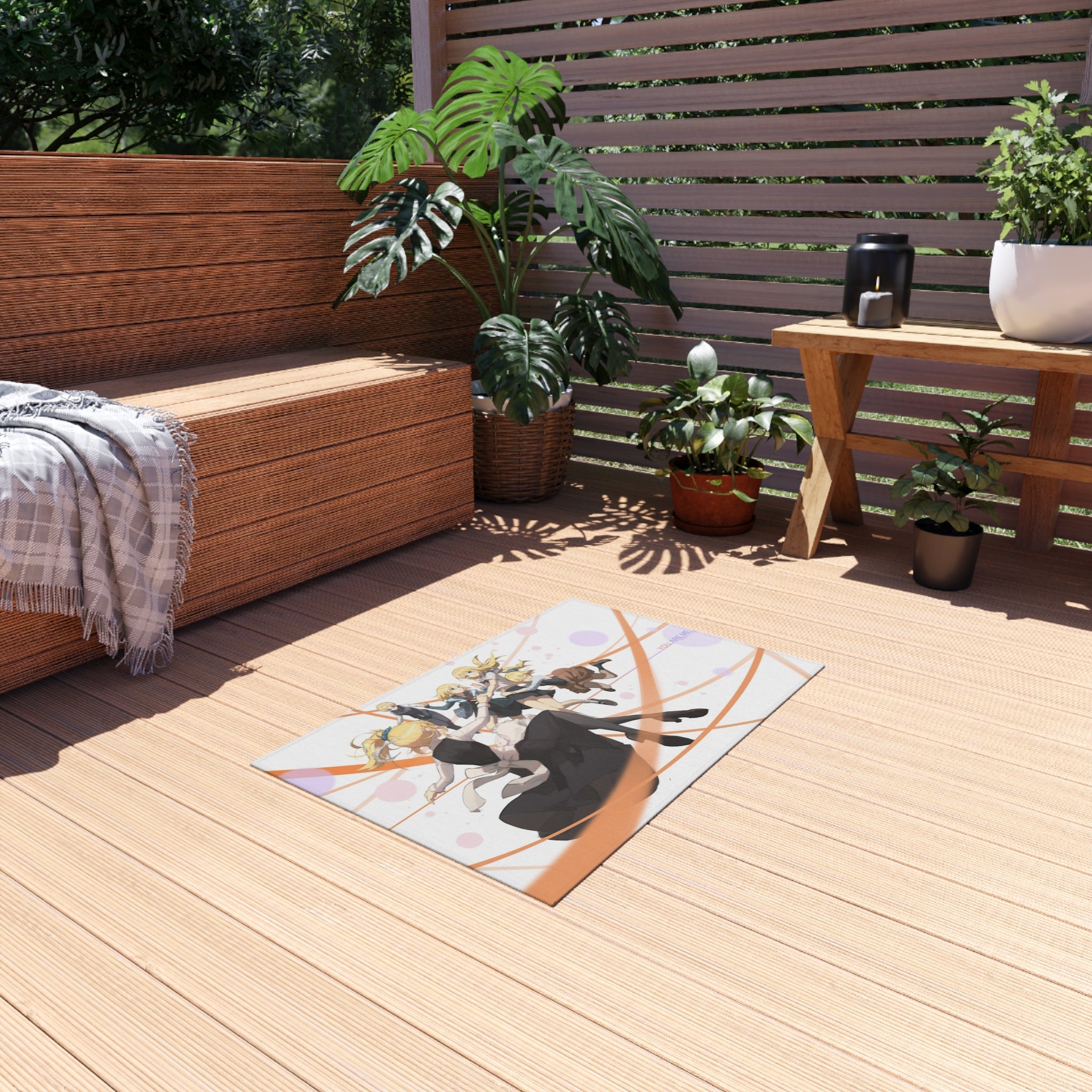 This area rug is crafted with durable construction and hemmed edges, offering lasting quality and style. A coated backing keeps the piece in place, making it the perfect finishing touch for any interior design. Vibrant colors and anime allow you to effortlessly match your existing aesthetic.