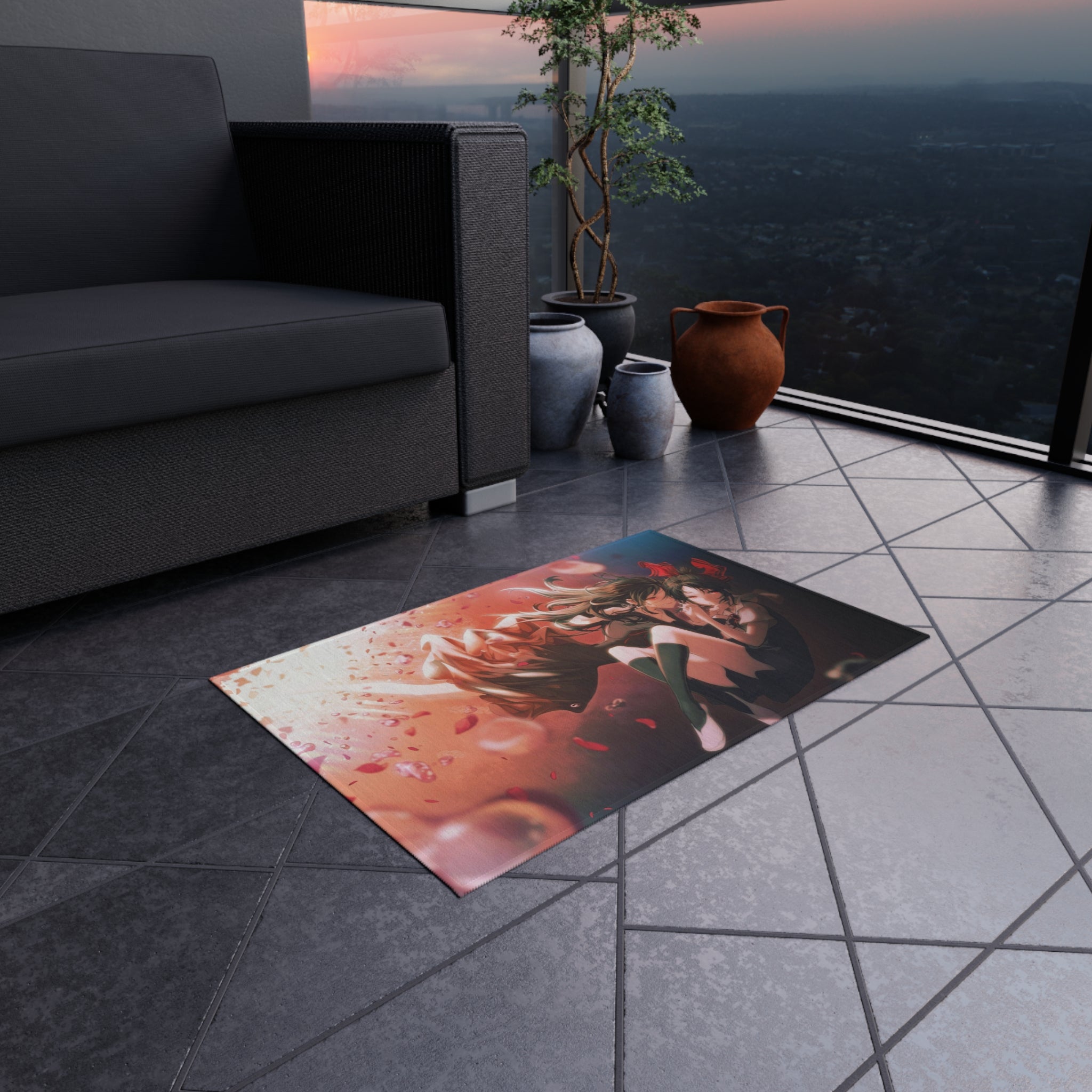 This area rug is crafted with durable construction and hemmed edges, offering lasting quality and style. A coated backing keeps the piece in place, making it the perfect finishing touch for any interior design. Vibrant colors and anime allow you to effortlessly match your existing aesthetic.