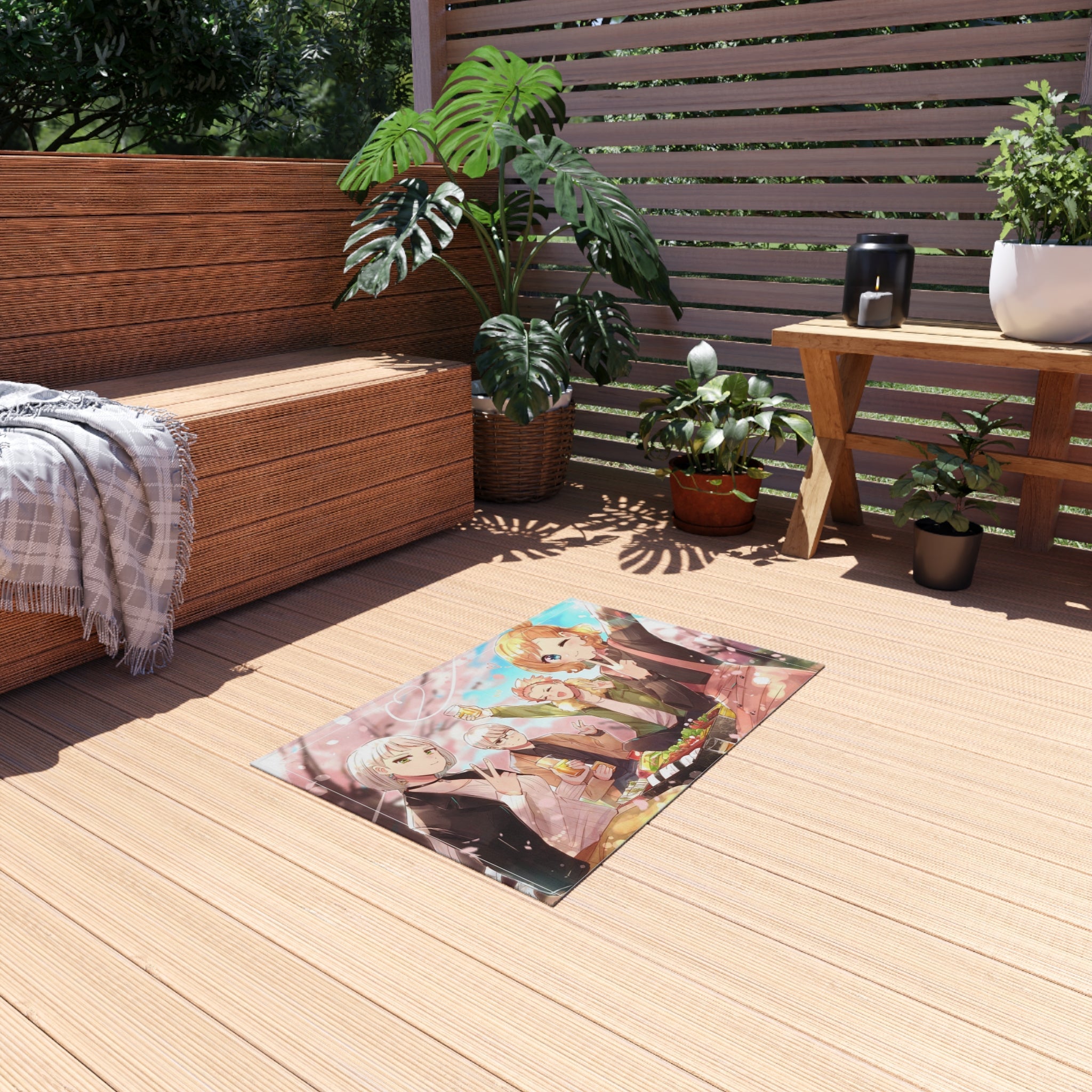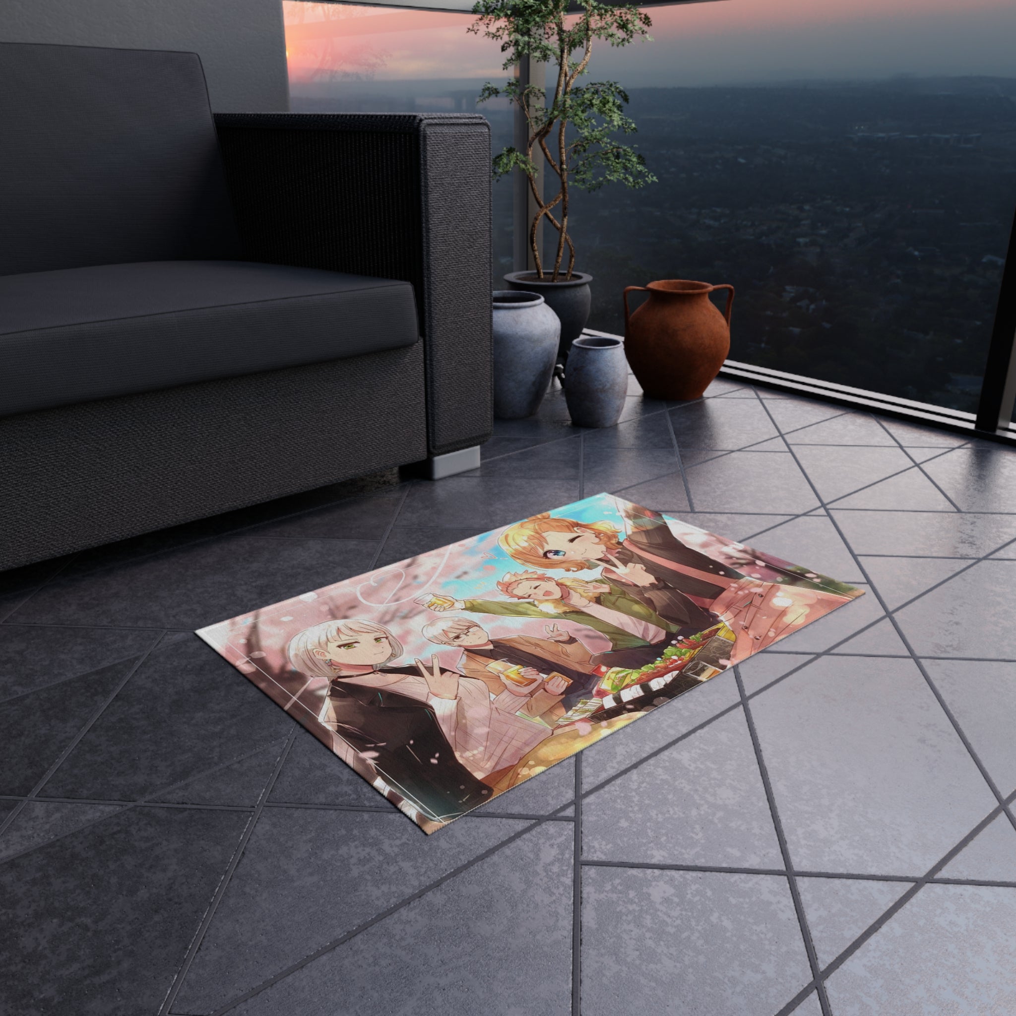This area rug is crafted with durable construction and hemmed edges, offering lasting quality and style. A coated backing keeps the piece in place, making it the perfect finishing touch for any interior design. Vibrant colors and anime allow you to effortlessly match your existing aesthetic.