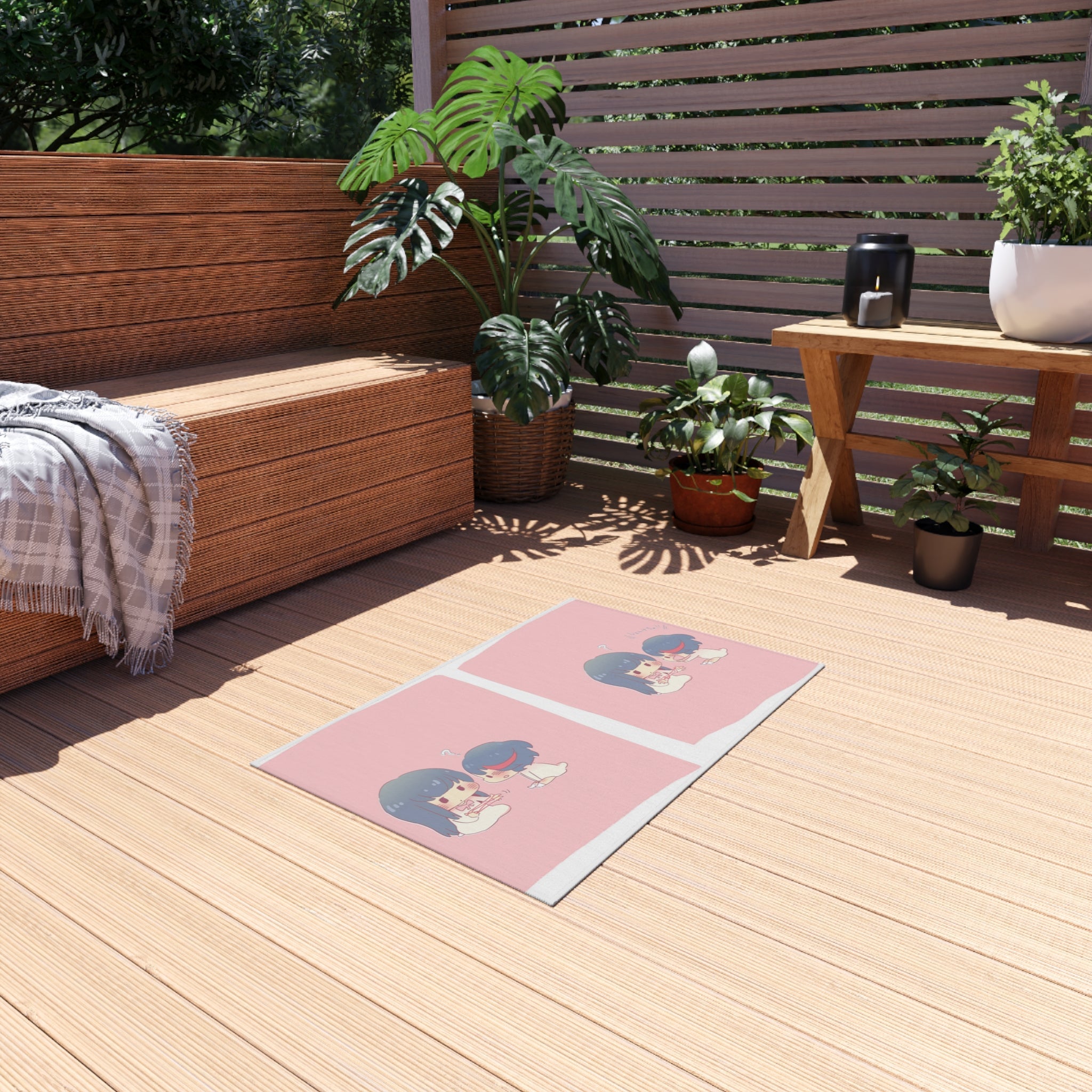 This area rug is crafted with durable construction and hemmed edges, offering lasting quality and style. A coated backing keeps the piece in place, making it the perfect finishing touch for any interior design. Vibrant colors and anime allow you to effortlessly match your existing aesthetic.