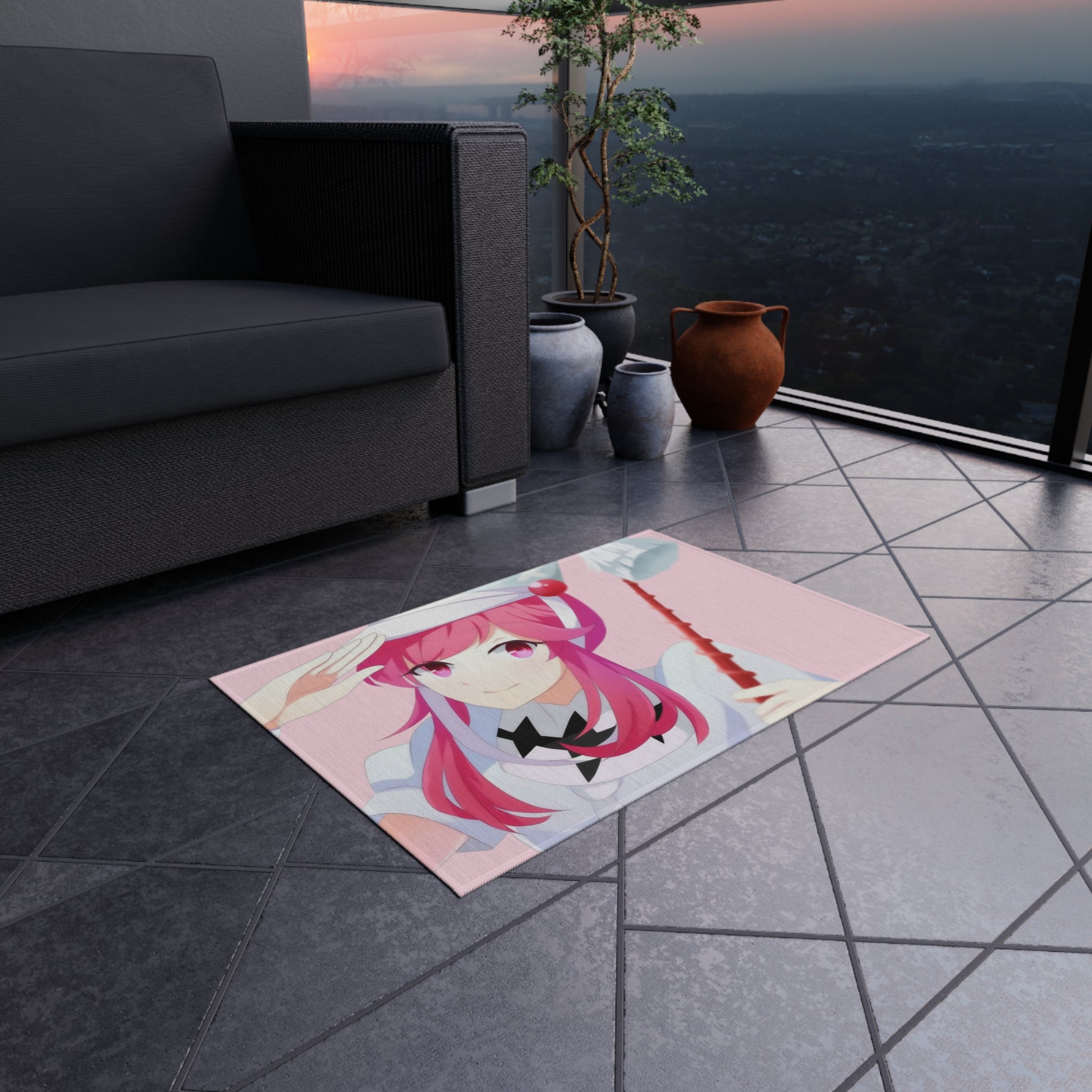 This area rug is crafted with durable construction and hemmed edges, offering lasting quality and style. A coated backing keeps the piece in place, making it the perfect finishing touch for any interior design. Vibrant colors and anime allow you to effortlessly match your existing aesthetic.