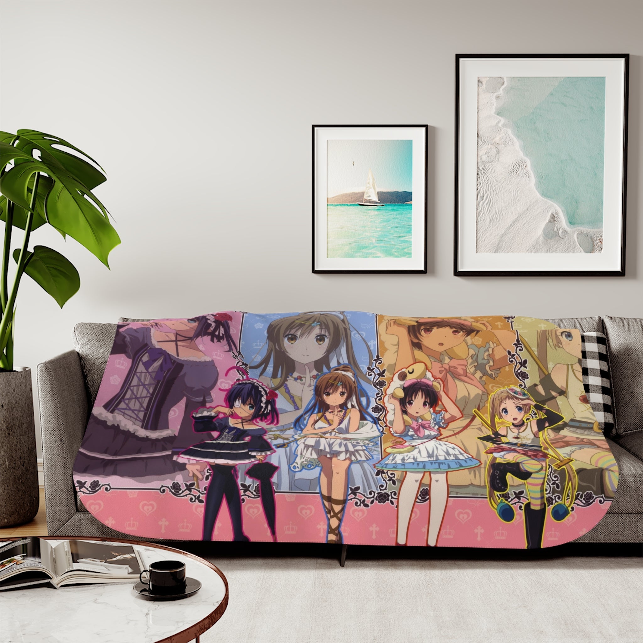 • Load image into Gallery viewer, Love, Chunibyo & Other Delusions Rikka Takanashi, Sanae Dekomori, Shinka Nibutani, Kumin Tsuyuri Sherpa Blanket