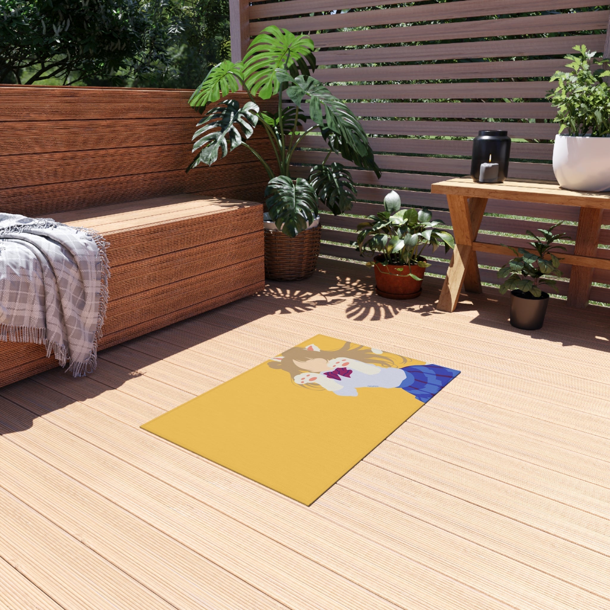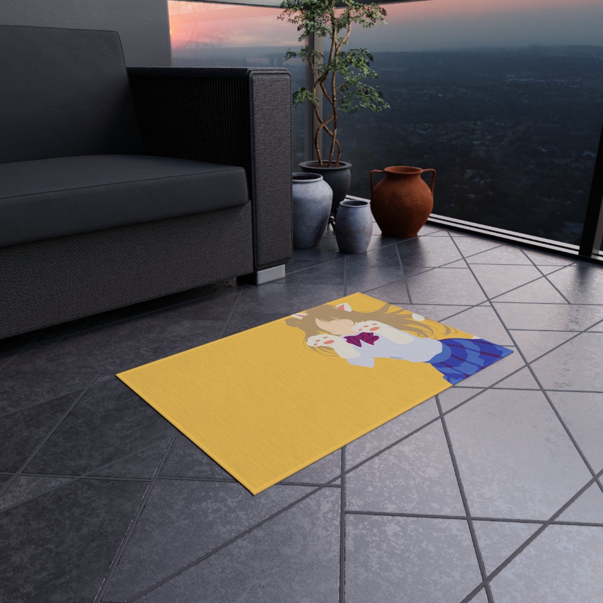 This area rug is crafted with durable construction and hemmed edges, offering lasting quality and style. A coated backing keeps the piece in place, making it the perfect finishing touch for any interior design. Vibrant colors and anime allow you to effortlessly match your existing aesthetic.
