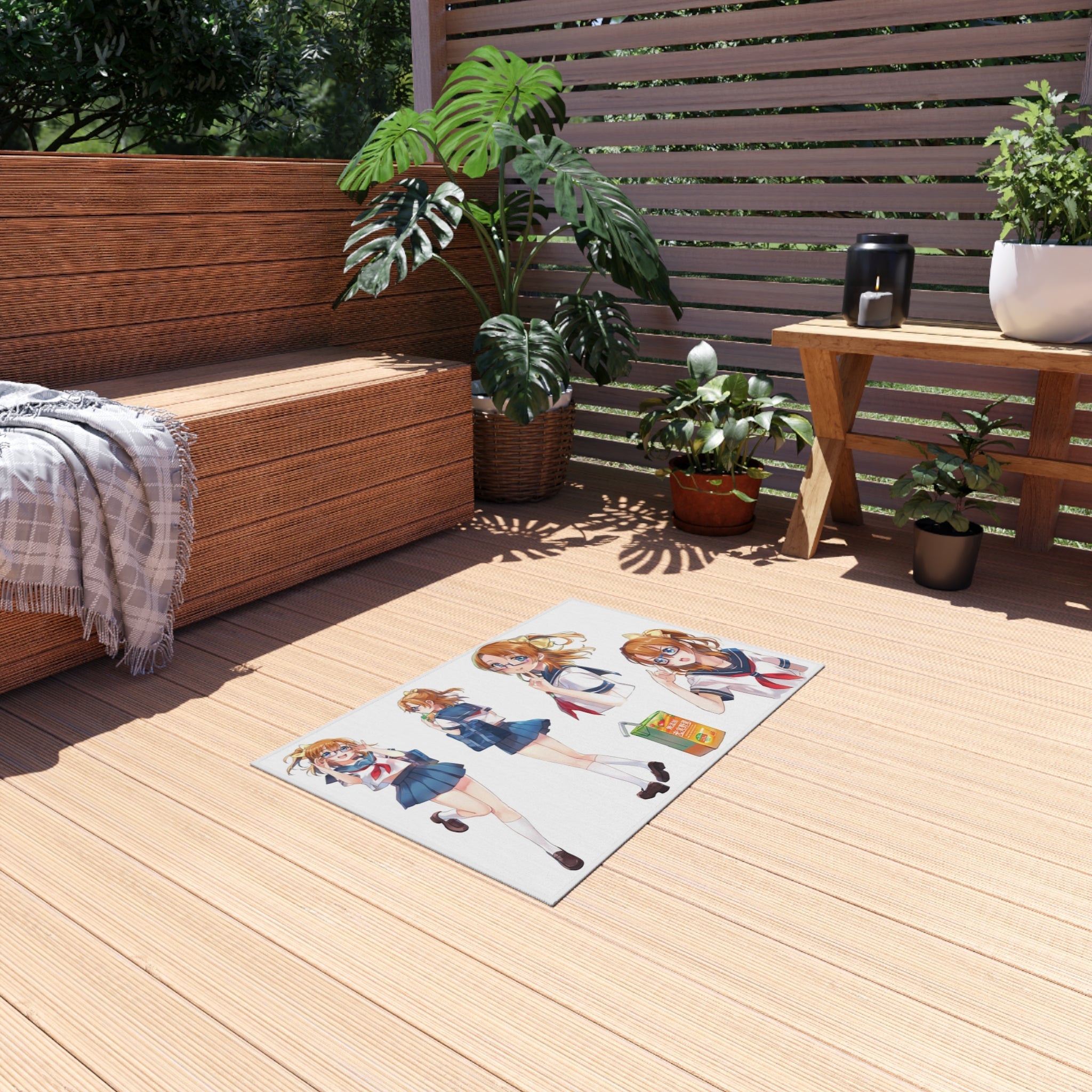This area rug is crafted with durable construction and hemmed edges, offering lasting quality and style. A coated backing keeps the piece in place, making it the perfect finishing touch for any interior design. Vibrant colors and anime allow you to effortlessly match your existing aesthetic.