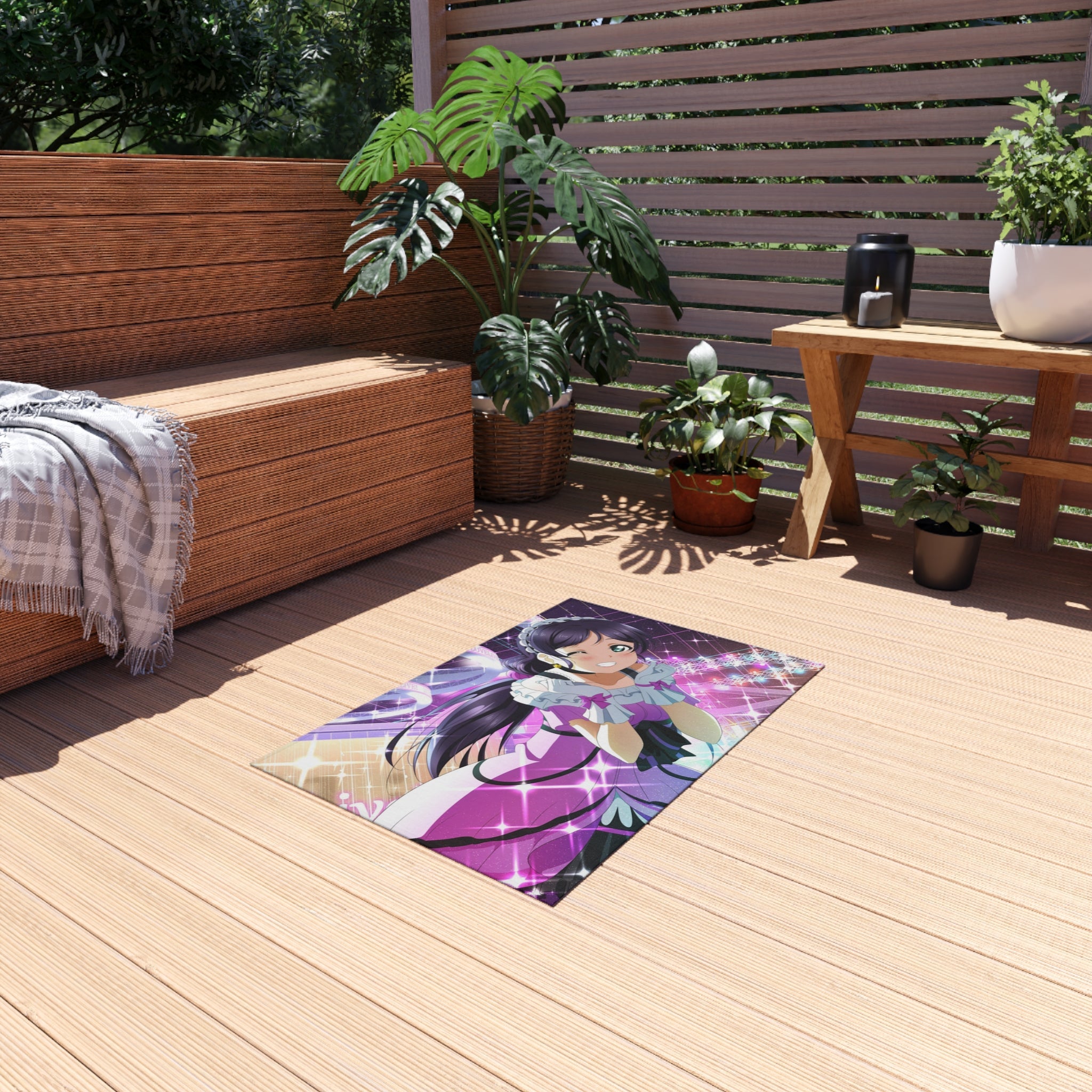 This area rug is crafted with durable construction and hemmed edges, offering lasting quality and style. A coated backing keeps the piece in place, making it the perfect finishing touch for any interior design. Vibrant colors and anime allow you to effortlessly match your existing aesthetic.