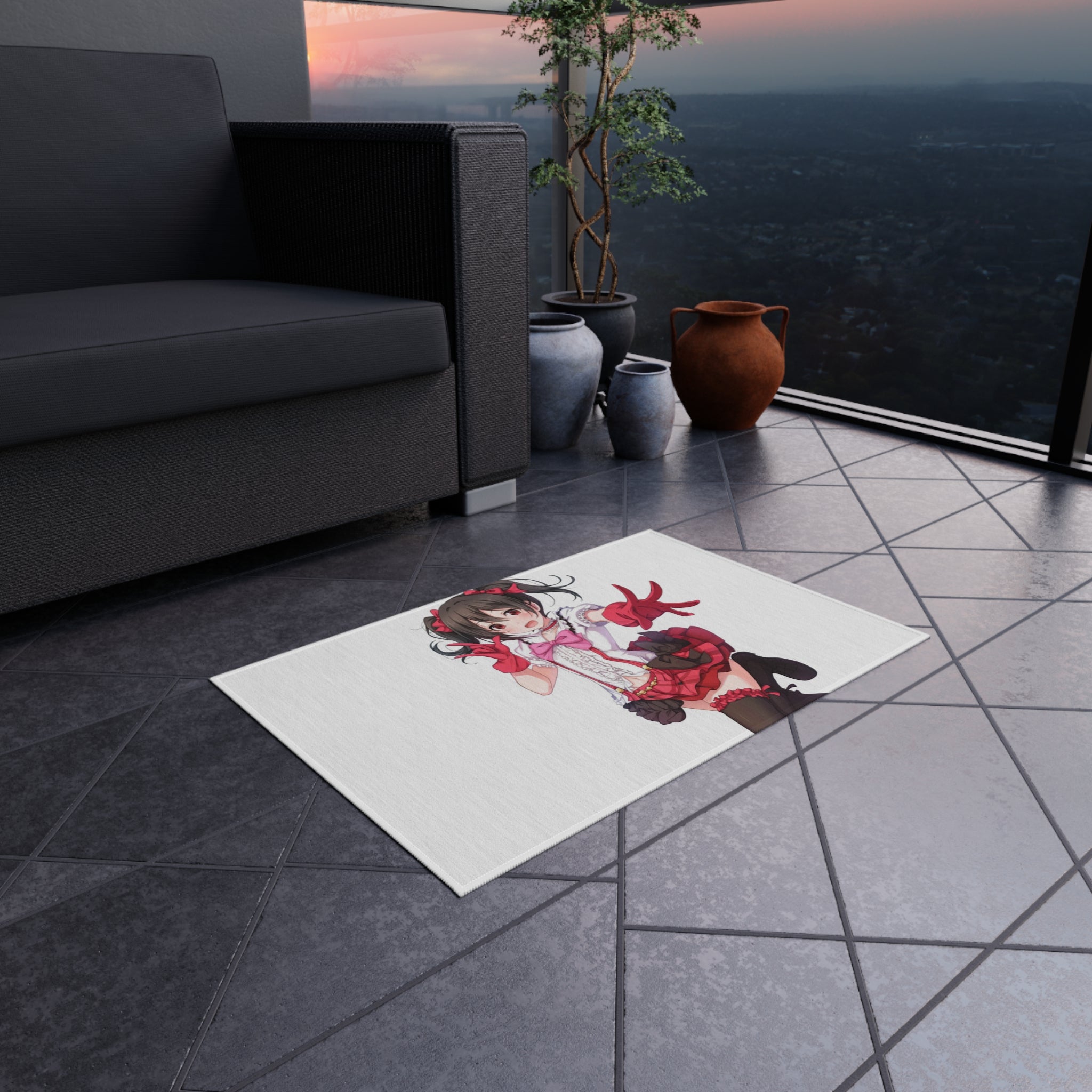This area rug is crafted with durable construction and hemmed edges, offering lasting quality and style. A coated backing keeps the piece in place, making it the perfect finishing touch for any interior design. Vibrant colors and anime allow you to effortlessly match your existing aesthetic.