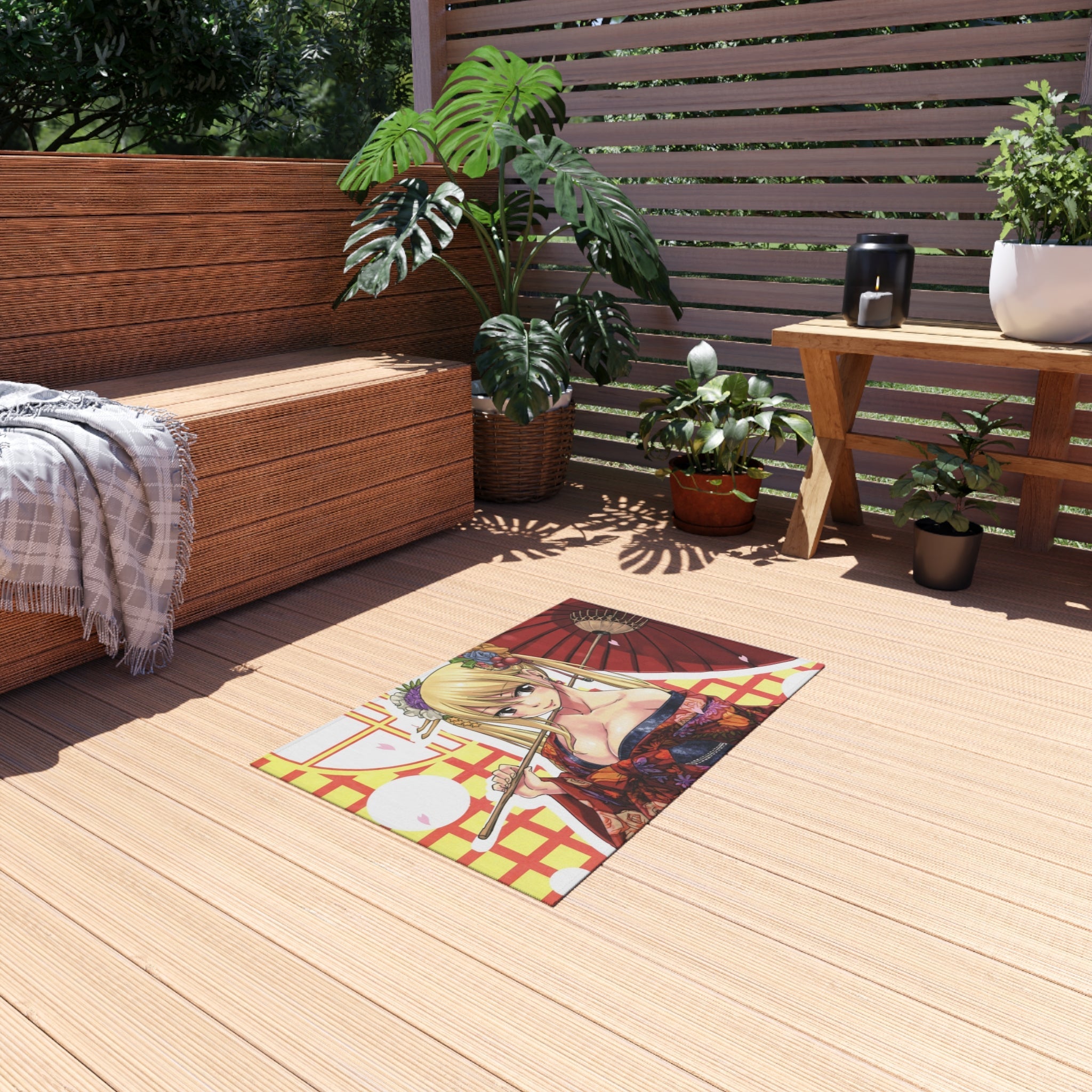 This area rug is crafted with durable construction and hemmed edges, offering lasting quality and style. A coated backing keeps the piece in place, making it the perfect finishing touch for any interior design. Vibrant colors and anime allow you to effortlessly match your existing aesthetic.