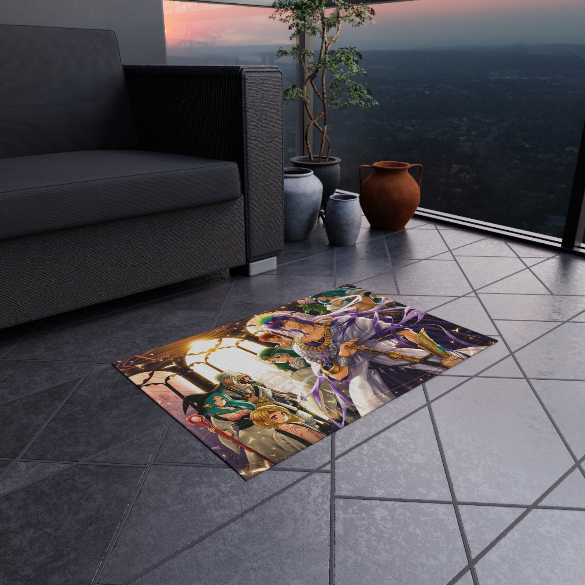 This area rug is crafted with durable construction and hemmed edges, offering lasting quality and style. A coated backing keeps the piece in place, making it the perfect finishing touch for any interior design. Vibrant colors and anime allow you to effortlessly match your existing aesthetic.