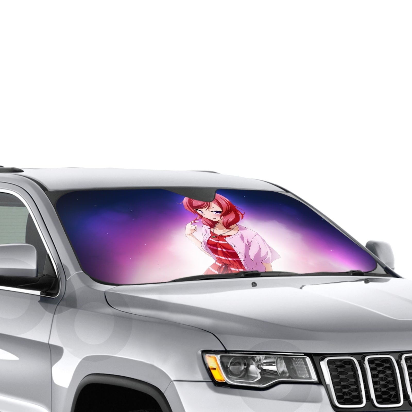 Showcase your favorite anime and protect your car's interior with this premium sunshade that blends vibrant fan art with essential protection.
