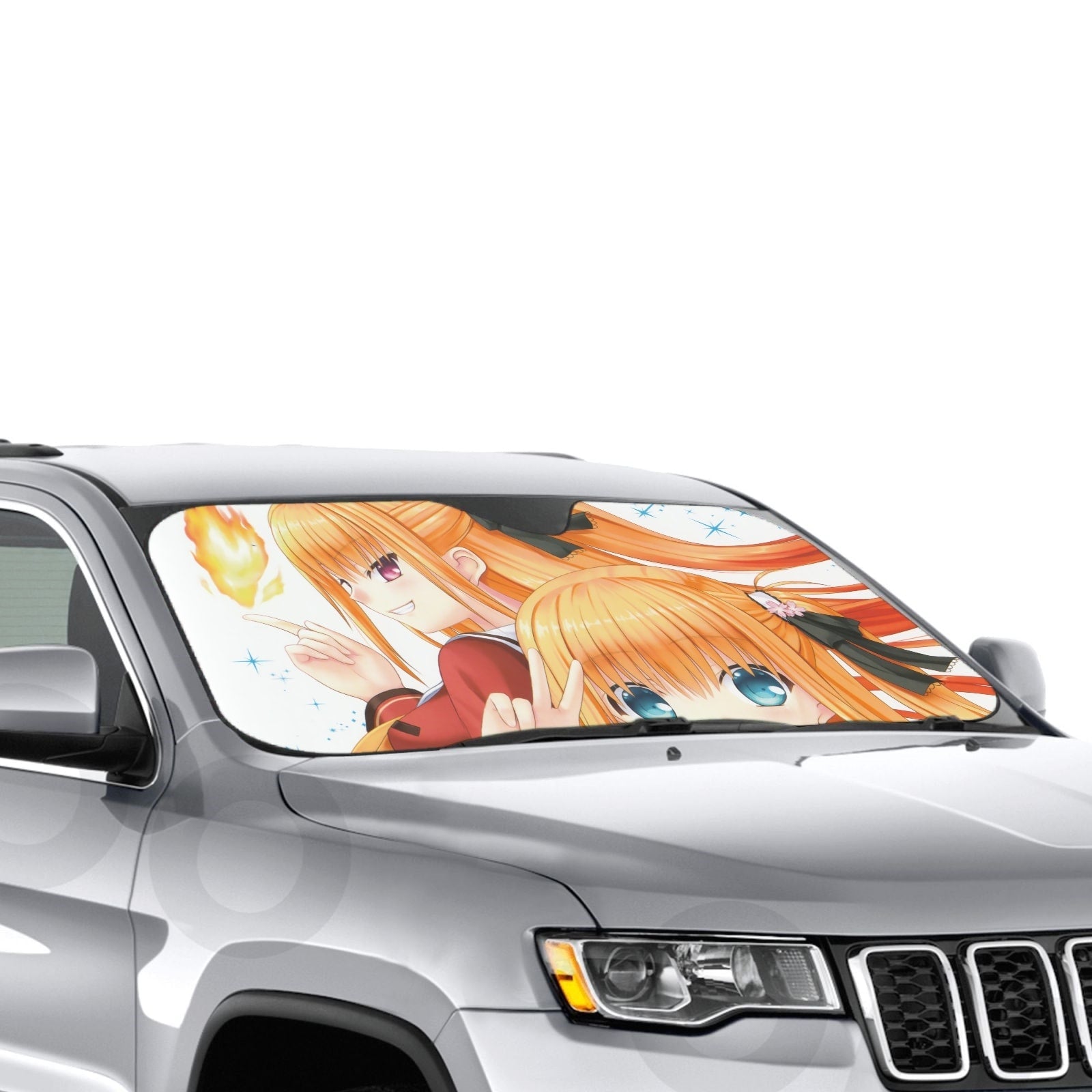 Showcase your favorite anime and protect your car's interior with this premium sunshade that blends vibrant fan art with essential protection.