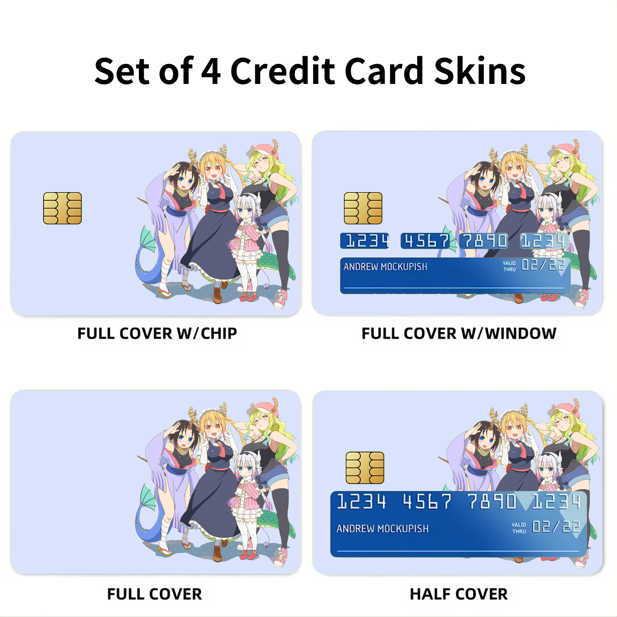 Miss Kobayashi's Dragon Maid Kanna Kamui, Elma, Kobayashi San Chi No Maid Dragon, Quetzalcoatl, Tohru Credit Card Skins (4-in-1 Pack)