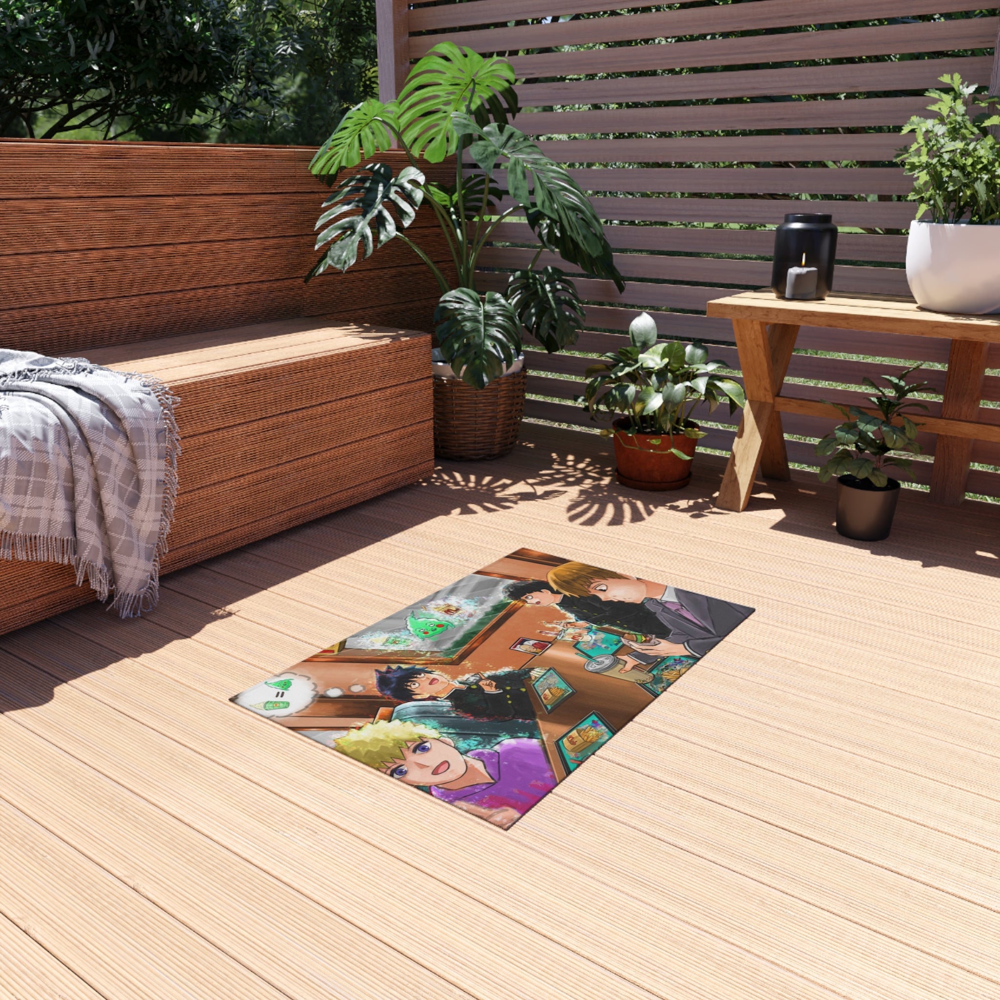 This area rug is crafted with durable construction and hemmed edges, offering lasting quality and style. A coated backing keeps the piece in place, making it the perfect finishing touch for any interior design. Vibrant colors and anime allow you to effortlessly match your existing aesthetic.