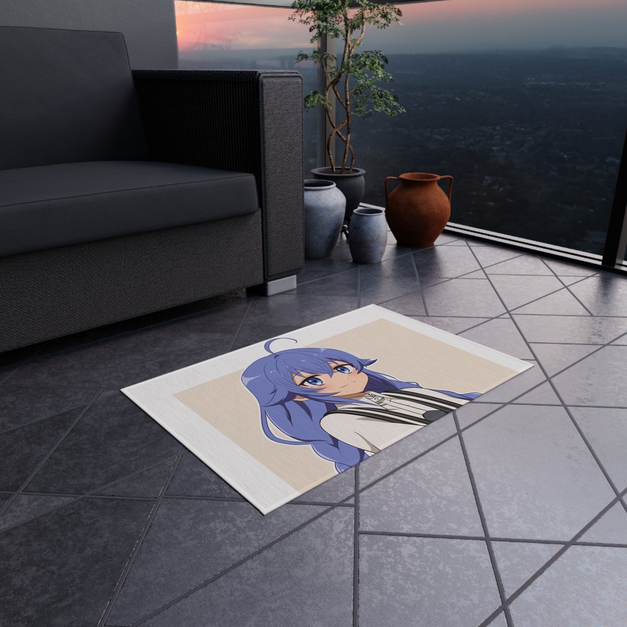 This area rug is crafted with durable construction and hemmed edges, offering lasting quality and style. A coated backing keeps the piece in place, making it the perfect finishing touch for any interior design. Vibrant colors and anime allow you to effortlessly match your existing aesthetic.