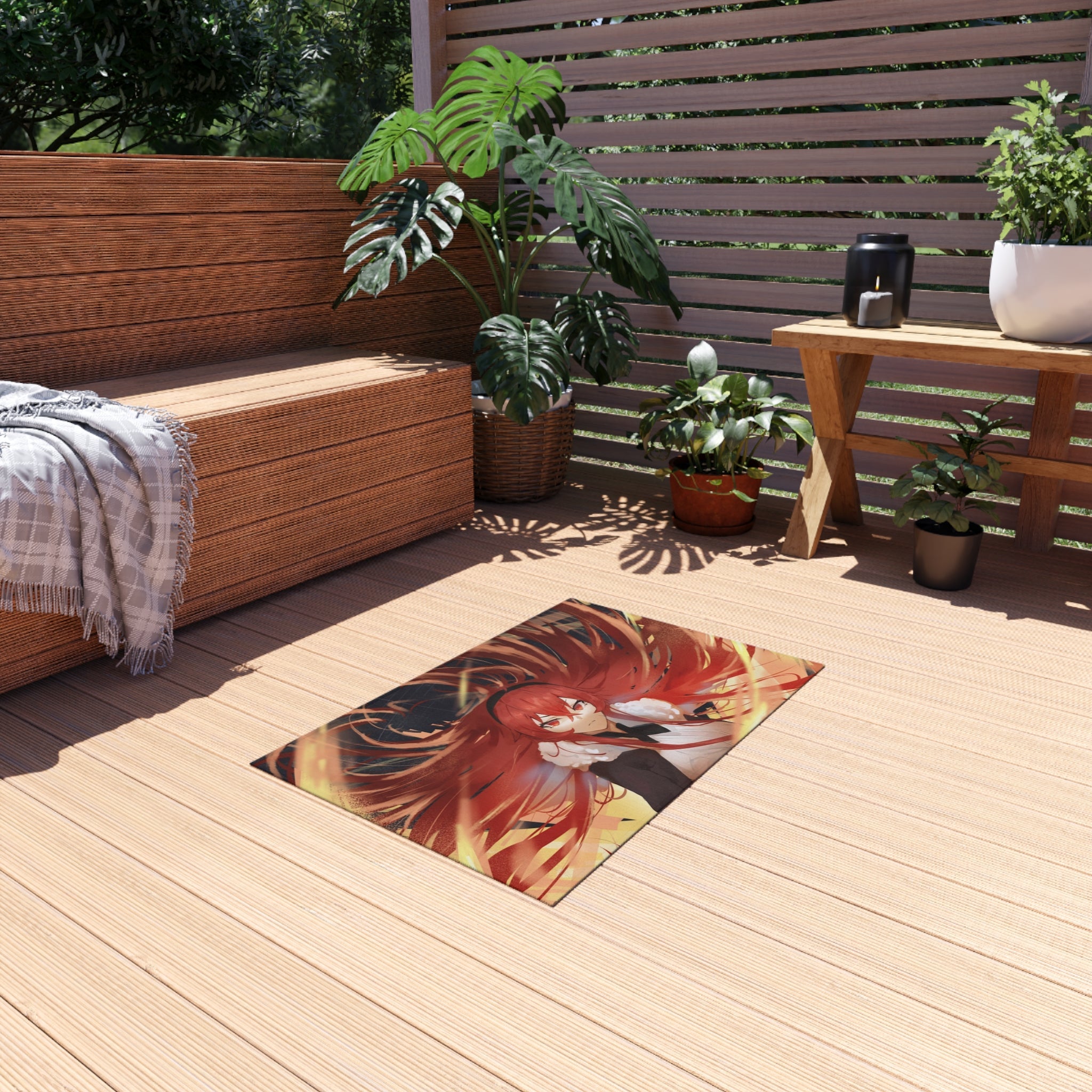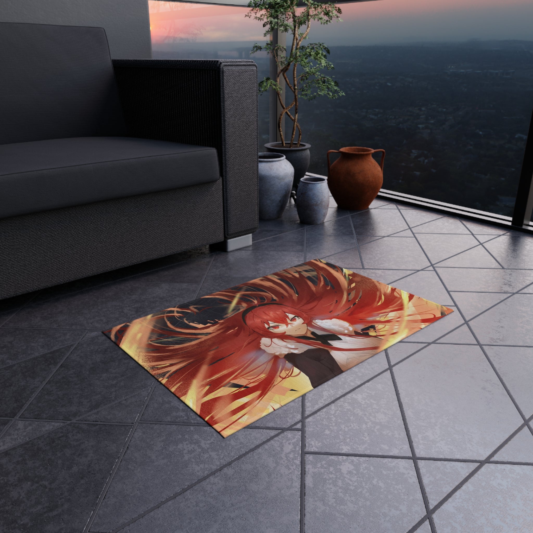 This area rug is crafted with durable construction and hemmed edges, offering lasting quality and style. A coated backing keeps the piece in place, making it the perfect finishing touch for any interior design. Vibrant colors and anime allow you to effortlessly match your existing aesthetic.