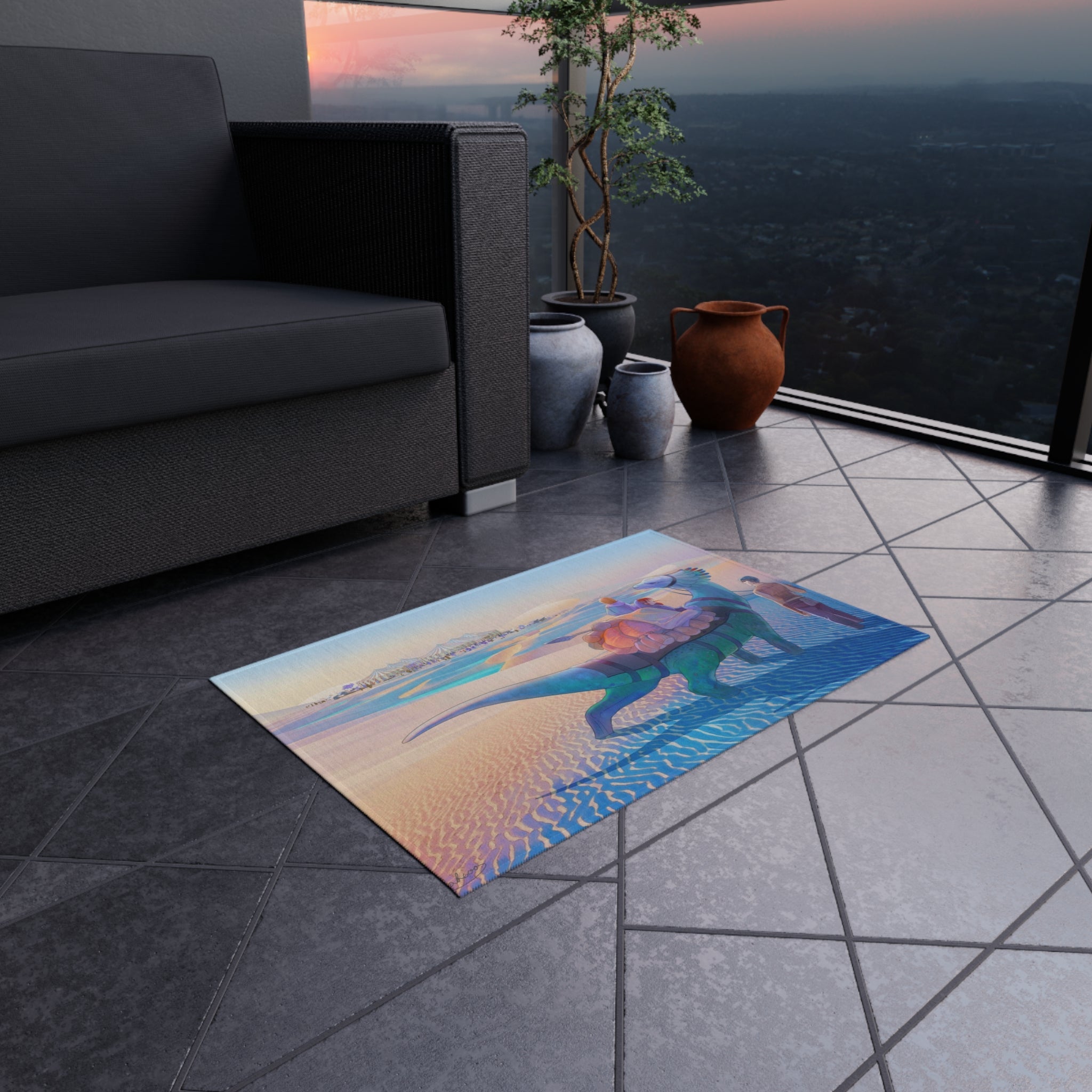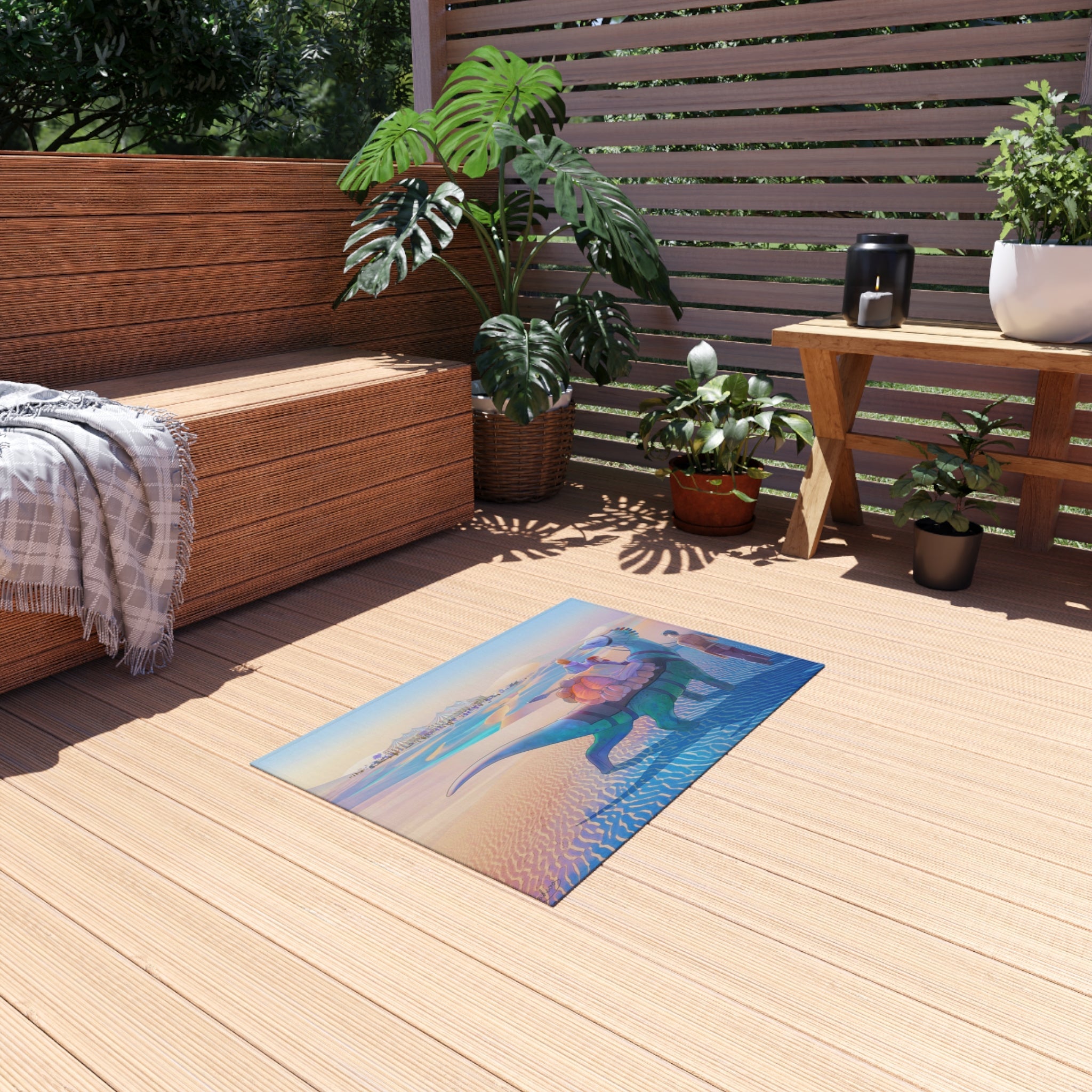 This area rug is crafted with durable construction and hemmed edges, offering lasting quality and style. A coated backing keeps the piece in place, making it the perfect finishing touch for any interior design. Vibrant colors and anime allow you to effortlessly match your existing aesthetic.
