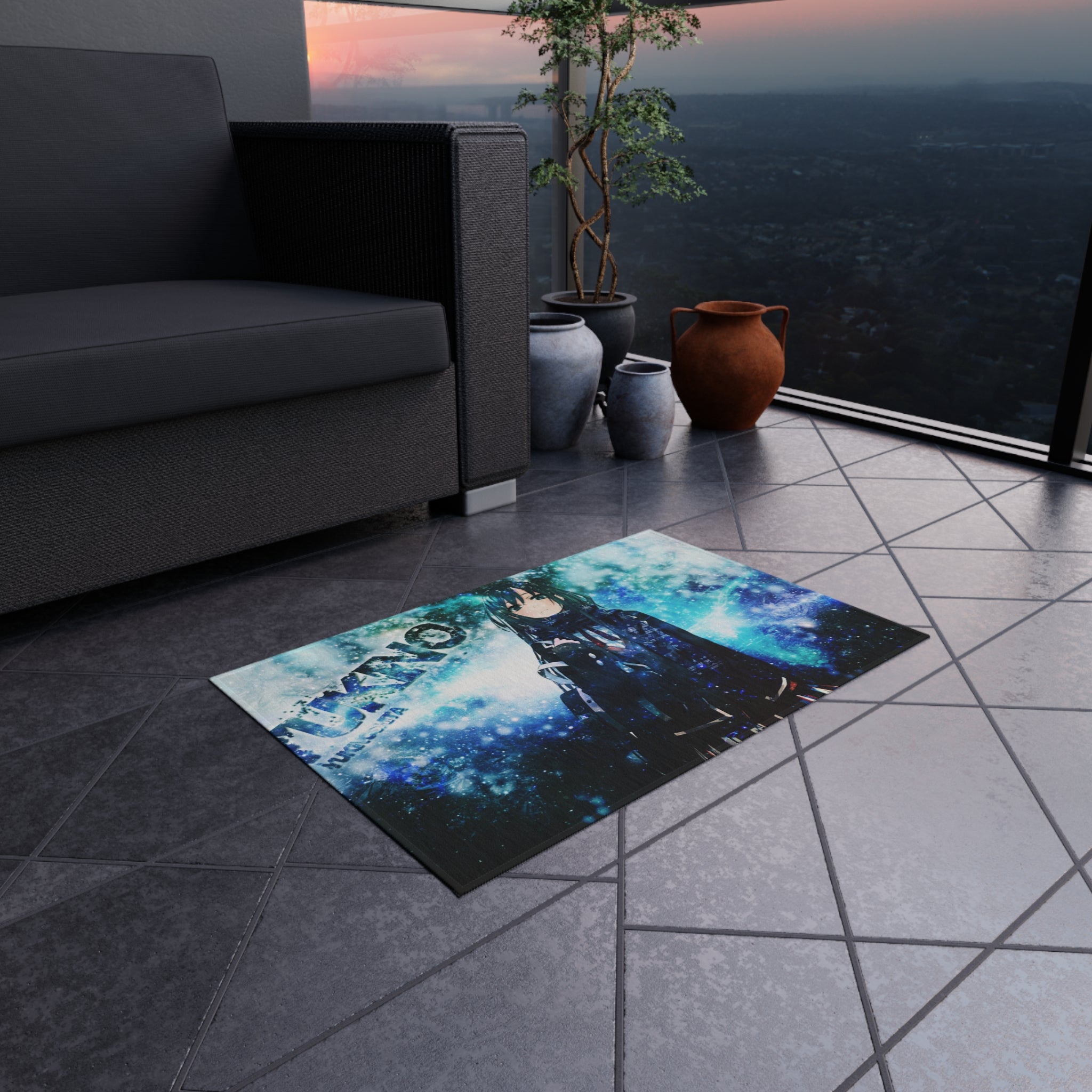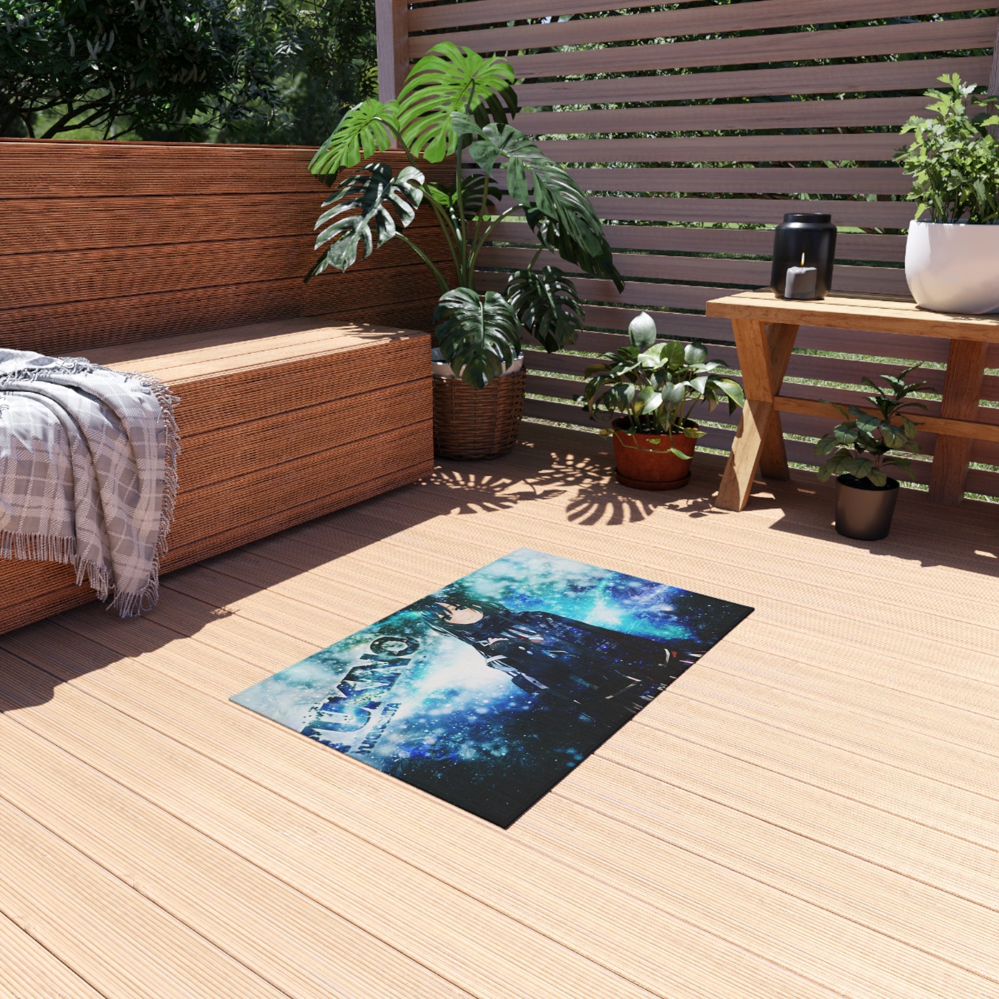 This area rug is crafted with durable construction and hemmed edges, offering lasting quality and style. A coated backing keeps the piece in place, making it the perfect finishing touch for any interior design. Vibrant colors and anime allow you to effortlessly match your existing aesthetic.
