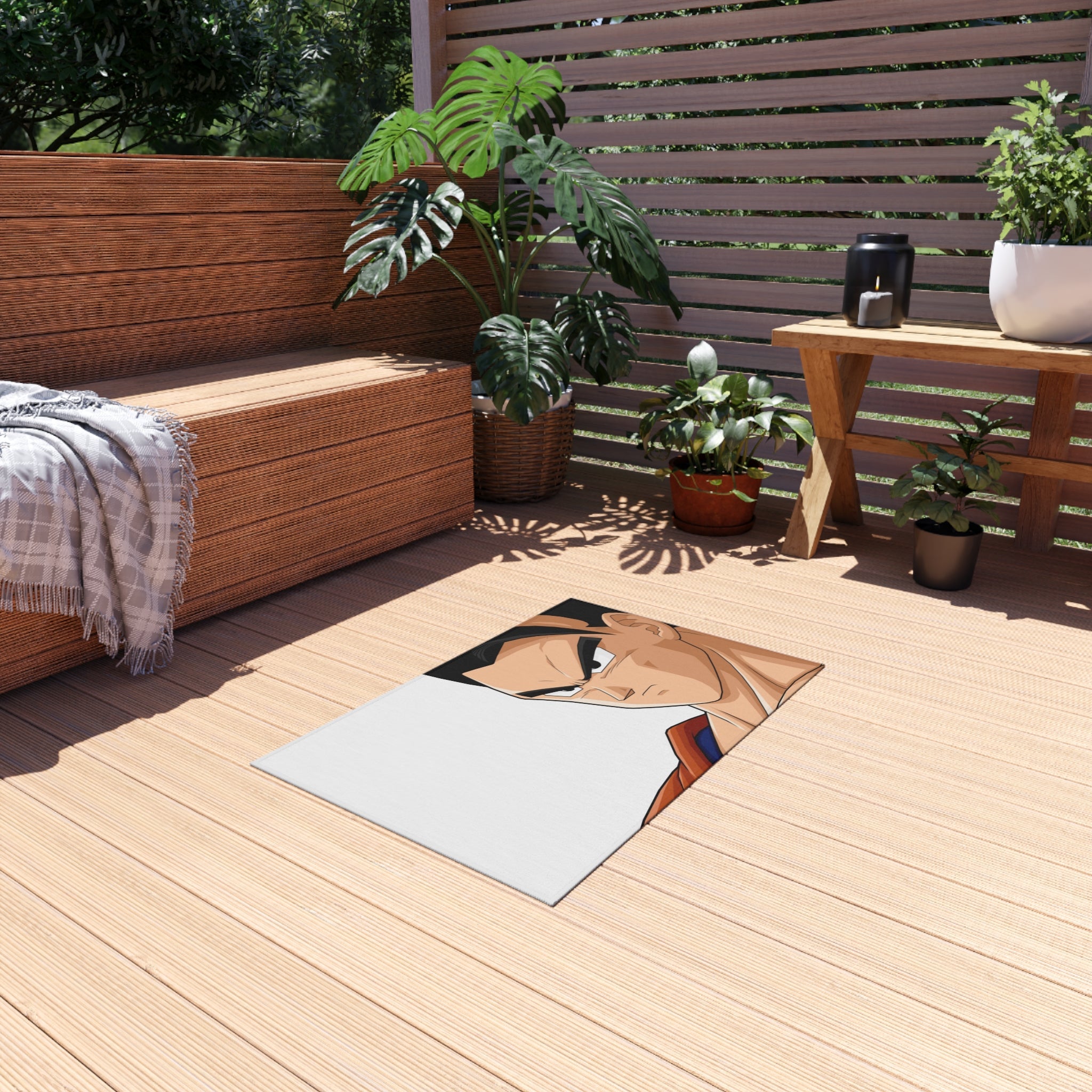 This area rug is crafted with durable construction and hemmed edges, offering lasting quality and style. A coated backing keeps the piece in place, making it the perfect finishing touch for any interior design. Vibrant colors and anime allow you to effortlessly match your existing aesthetic.