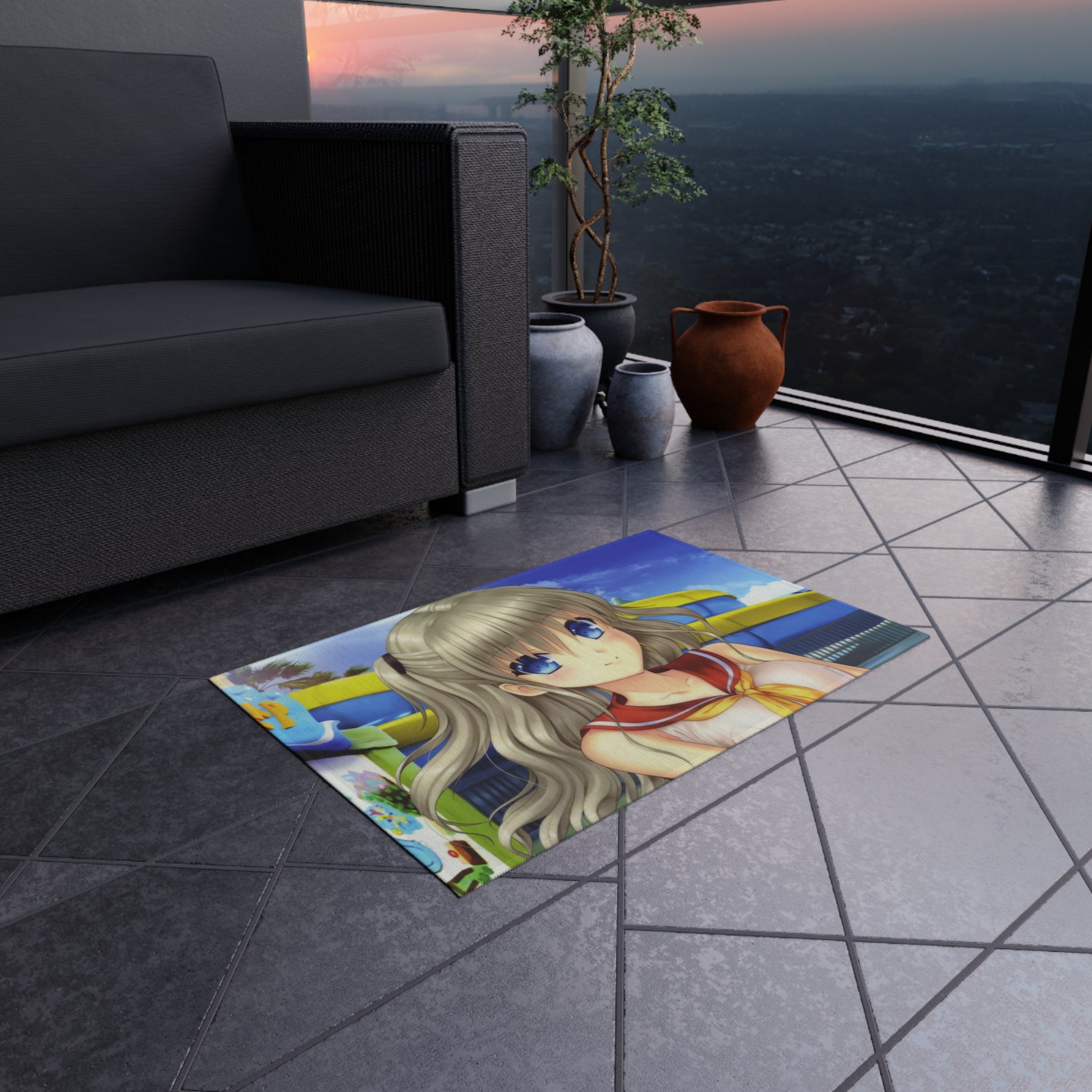 This area rug is crafted with durable construction and hemmed edges, offering lasting quality and style. A coated backing keeps the piece in place, making it the perfect finishing touch for any interior design. Vibrant colors and anime allow you to effortlessly match your existing aesthetic.