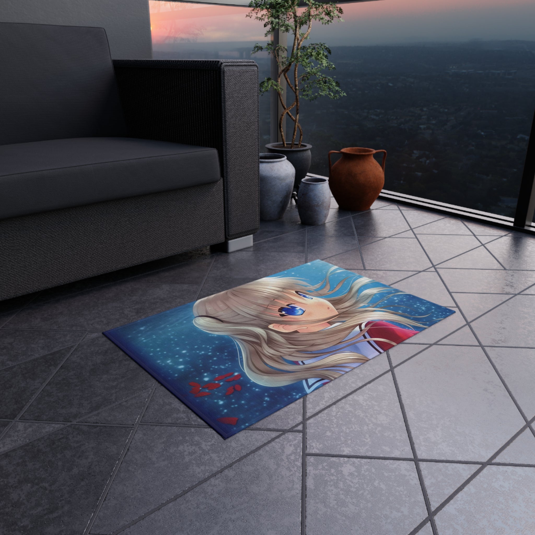 This area rug is crafted with durable construction and hemmed edges, offering lasting quality and style. A coated backing keeps the piece in place, making it the perfect finishing touch for any interior design. Vibrant colors and anime allow you to effortlessly match your existing aesthetic.