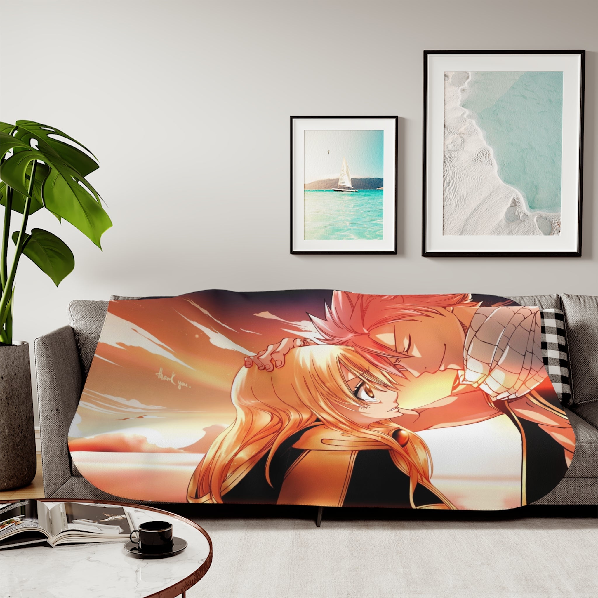 Natsu and Lucy (Fairy Tail) Sherpa Blanket